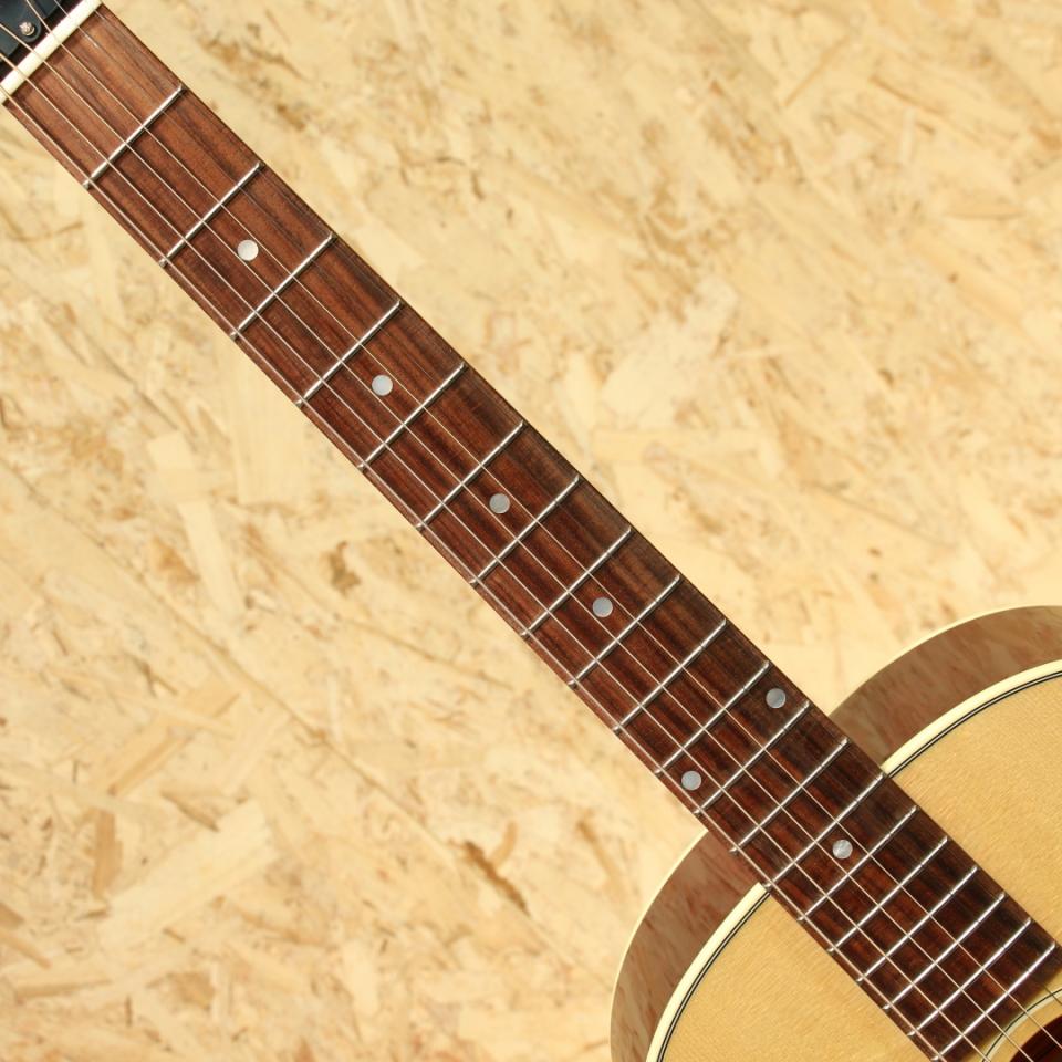 1942年よりJ-45と共に産声をあげ、J-45を14 1/8インチまでダウンサイジングした定番のモデル。ギブソンを代表する機種のひとつといえます。本器は1950年代よりインスパイアーされた"50s LG-2"。ヴィンテージライクなルックスを持ちながらモダンな演奏性を追求したOriginalシリーズより待望の復活です!シトカスプルーストップ、マホガニーサイド&バック、ローズウッド指板&レクタングルブリッジ、シングルリングロゼッタ、スモールべっこう柄ピックガード、3連クリームボタンのクルーソンタイプペグ、ノーマルスロットサドル、スキャロップドXブレイシング、アンティークナチュラルカラー。スモールボディ特有の歯切れの良い軽快なトーン、もちろんギブソンらしい力強さも健在です。小振りなボディながら納得感のあるしっかりとたボリューム。J-45に引けを取らない存在感です。L.R.Baggs社製のelement VTCピックアップを搭載。サウンドホール縁に取り付けられた1Vol.1toneのコントローラーは緒感的な音作りが可能。ウォームで芯のあるラインサウンドは大音量でもナチュラルに響き、ステージ、レコーディング等でも頼もしい相棒として活躍します。スモールギブソンの中でも一際人気の高いLG-2、レギュラーラインナップに加わったのは実に久しぶり、待望の方も多かったのでは無いでしょうか。ラフに弾きたいけどしっかり楽しめる一本、メイン機としての取り回しの良いエレアコをお探しの方は是非お試しください。オリジナルハードケースが付属します。