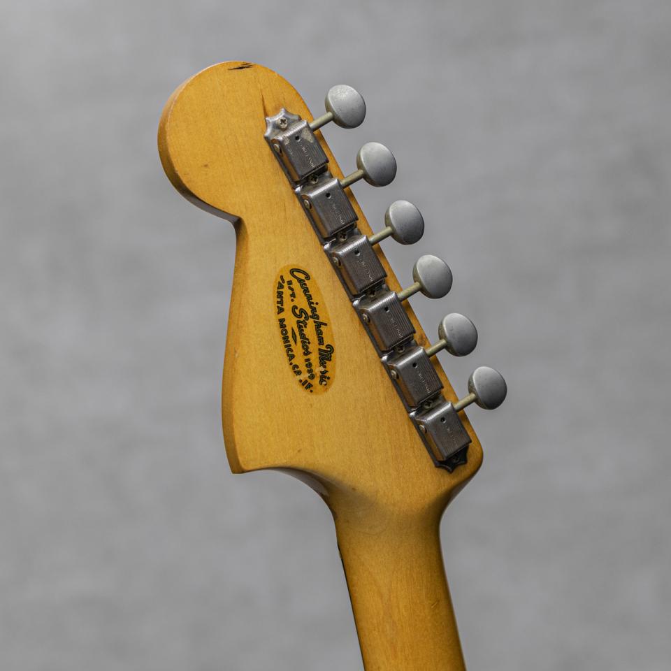 Bookmark Register for price cut notification1961年に、それまで発売されていたベースギターモデルに新しいコンセプトモデルとしてラインナップされた”Bass VI”。ショートスケールに6本の弦、3ピックアップ、フローティングトレモロを装備した新しい音楽の開拓者として誕生したが、なかなかその用途が浸透せず、1975年に製造終了となりました。本器は発売後に仕様変更が行われた1963年初め頃に製造された思われる1本。アルダー2pcsボディ、ハカランダ・ラウンドボード指板、四方柾目で取られたメイプルネック。ジャズベース同様の実寸39mmほどのAネックナット幅で、手に馴染み良いCシェイプネック。とても良い表情をしたオリジナルべっ甲柄セルロイド4plyピックガード、ピックアップカバー、コントロールノブなど、それぞれが良い表情を見せながらオリジナルをストック。ピックアップもこの年から使用開始されたジャガーと同タイプのエナメル/ブラックファイバーベースのオリジナルシールドPUx3を搭載。スライドPUセレクターx3に、同じくこの年から採用されたスライド”Strangle"セレクター。コントロールはスタックポール社製POTのVolumeが64年40週目Date、Toneは63年9週目Date、レッドダイムセラミックコンデンサーを搭載。シングルラインクルーソンデラックスペグ、ストリングガイド、サドル、ブリッジミュートにフローティングトレモロなどのハードウェアもオリジナルをキープされています。ネックデイトは62年8月ですが、当時同モデルのオーダー数が少なく63年の途中までこのネックデイトのものが散見されます。ボディデイトは63年3月。その他スクリューなどもオリジナルパーツがストックされており、高いオリジナル度を保った1本です。ブリッジミュートやPUハイトのフォームラバーは硬化してしまっていますが、他のオリジナルドを考慮し、現状はオリジナル部材のままでストックさせていただいています。ご購入時に交換希望の際はご相談ください。1961年に発売された”Bass VI”はすぐにマイナーチェンジを迎えます。PUが変わり、”Strangle"セレクターが搭載されます。ベースアンプに繋げばベースとして、そして”Strangle”スイッチを入れてギターアンプに繋げばバリトンギターとして活躍できる異色の存在。赤味のトリムカラーは飛んでいるものの、63年らしい鮮やかなサンバーストが最高に美しい本器。1弦側のホーン部先端に極小範囲のタッチアップは見られますが、それ以外はオリジナルフィニッシュを保っており、経年によるウェザーチェックが貫禄そのものです。サウンドもクリアで輪郭のあるサウンドから、パラミックスならではの野太く奥深い響きまで、幅広いトーンをオリジナルビンテージのそれで楽しみいただけます。60数年の経年ながらとても良いコンディションを保った本器、コレクションはもちろん、新しい音楽の扉を開けるのにも頼もしい相棒です。是非お手元に。。オリジナルブラックトーレックスハードケース(鍵付き)、オリジナルトレモロアームが付属します。