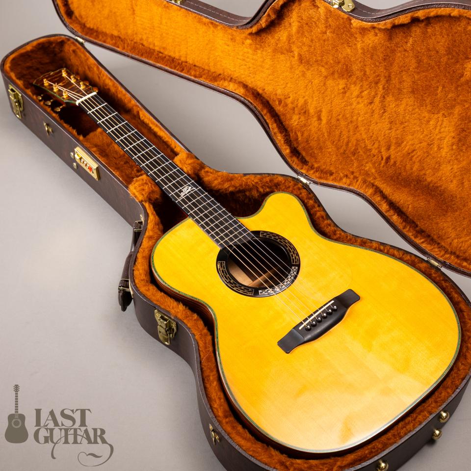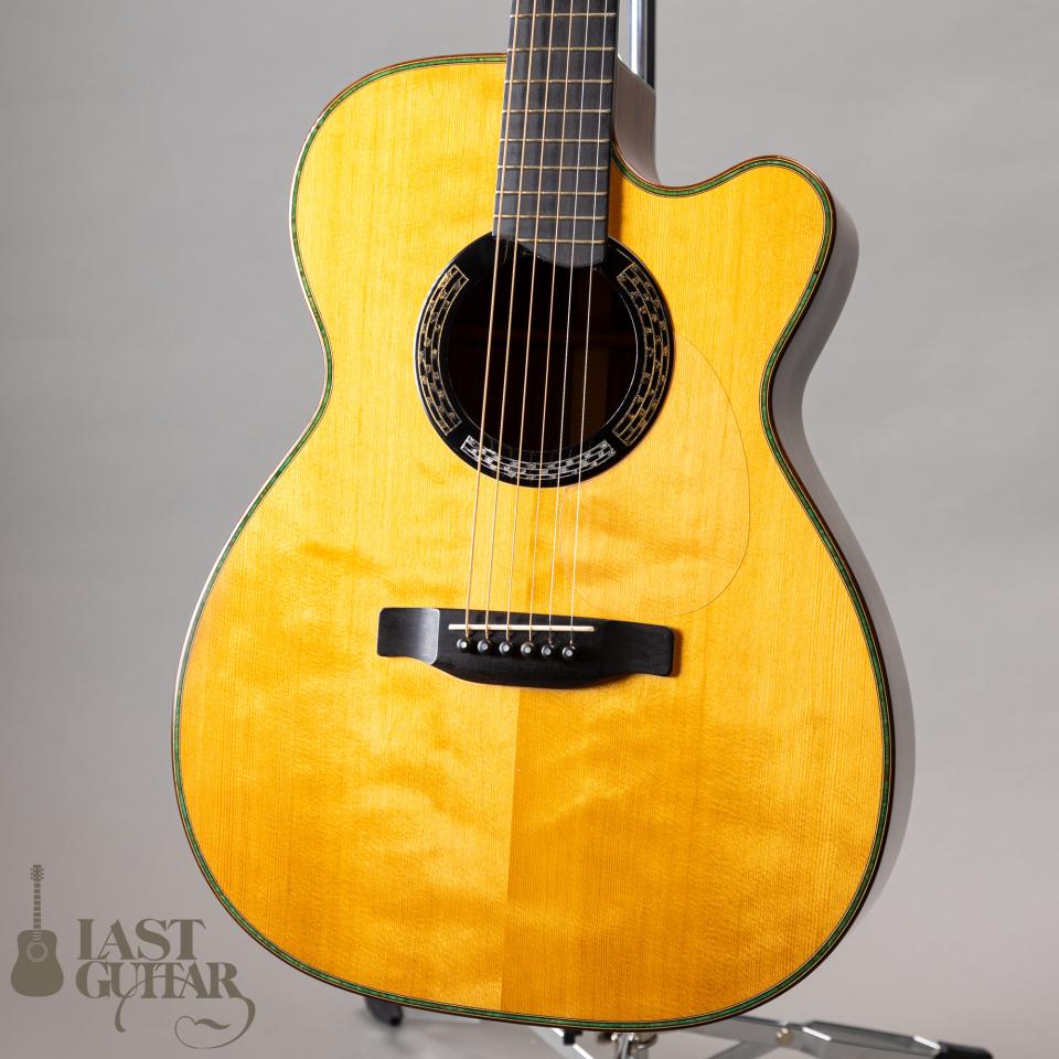 愛媛に工房を構えるベテランルシアー塩崎雅亮氏。塩崎氏は26歳の1982年に工房を設立し、現在も国内屈指のルシアーとして活躍されております。またヴィンテージ・マーティンギターの研究家としても有名です。そして工房の門下生には、「Kaoru Guitar」の中島馨 氏、「Hidaka Guitars」の日高雅樹 氏などの個人製作家がいらっしゃいます。