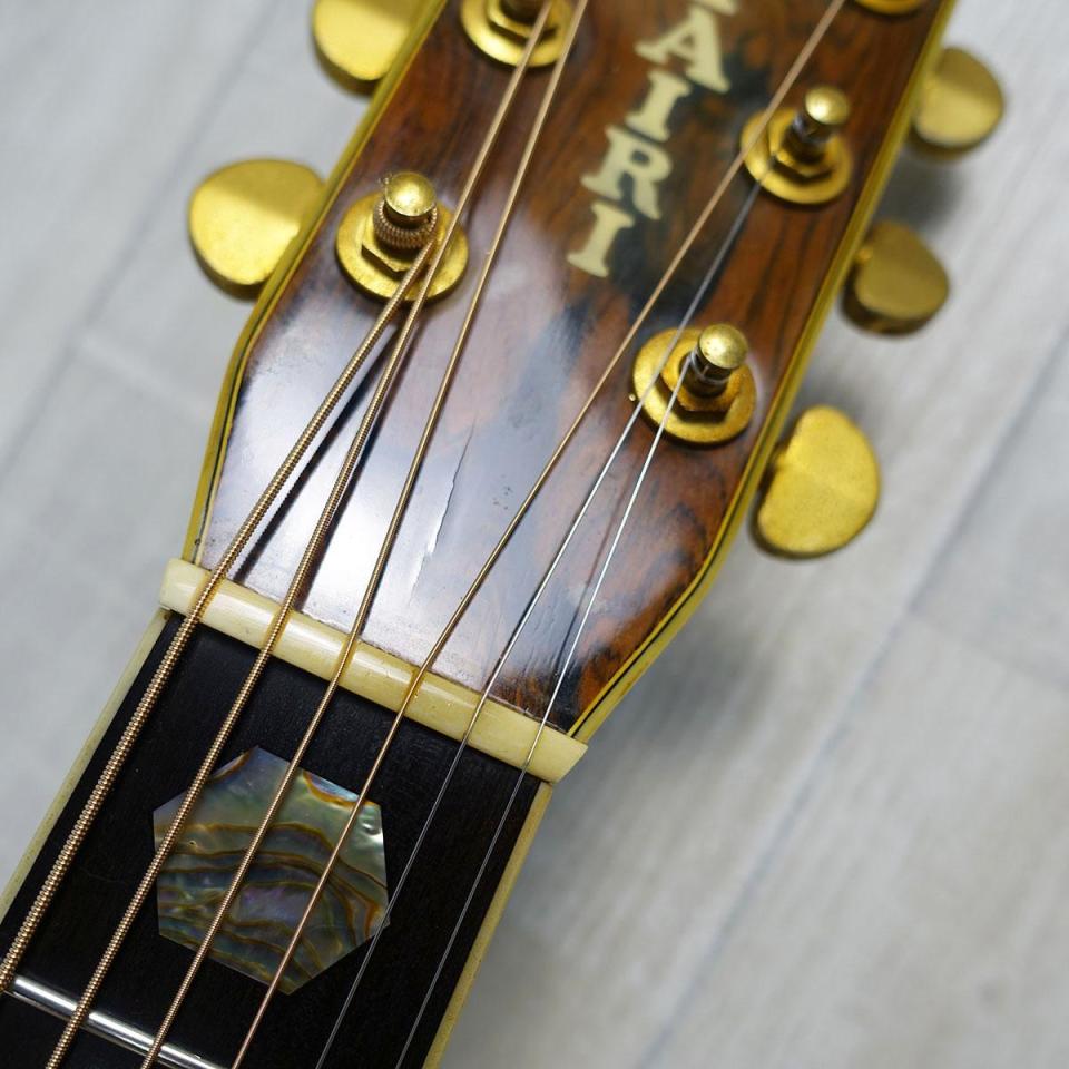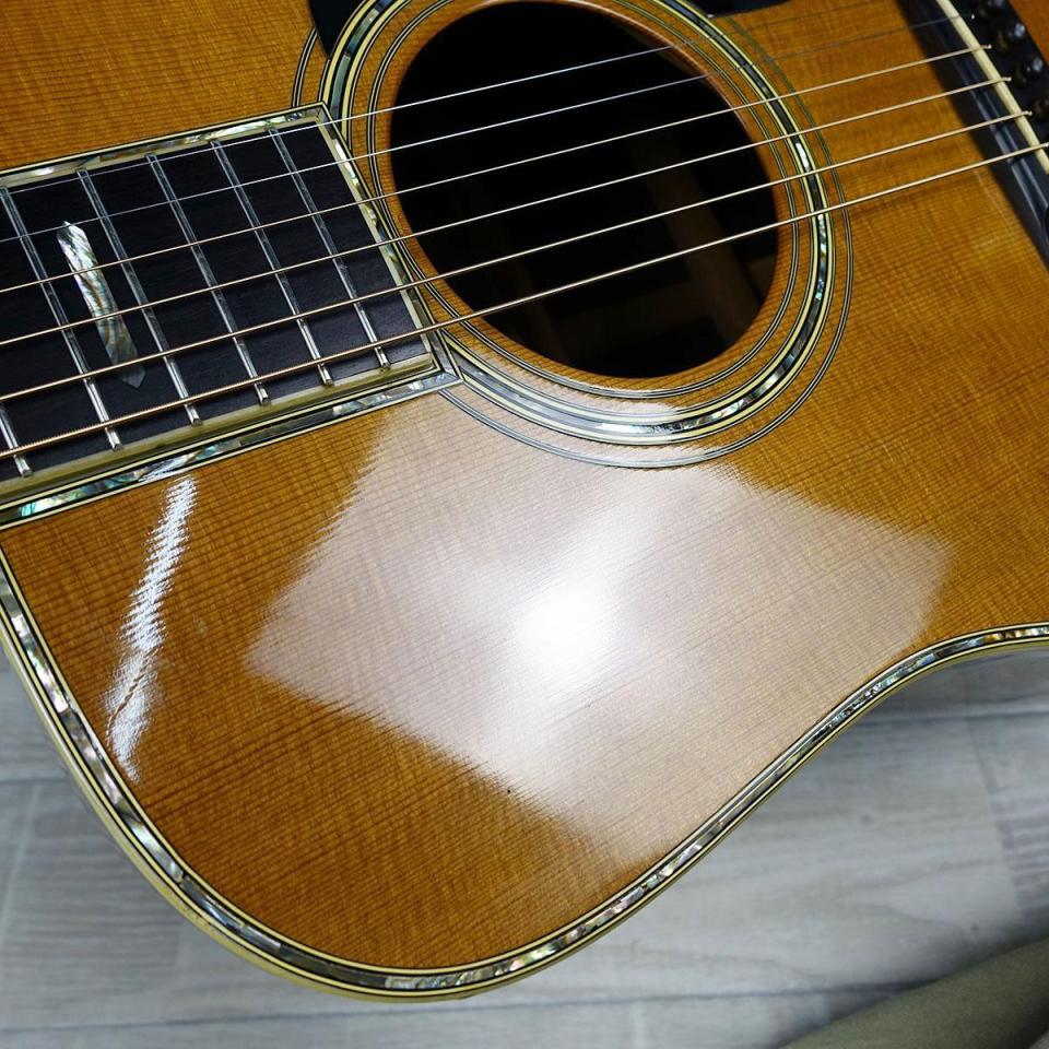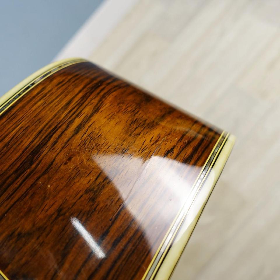 サウンドに関しては、ハカランダサイド&バックということもありますが、弾かれてない期間が長かったのかやや硬い印象。チェック時10分強強めのピッキングで"起こす"イメージで弾いているとやや明るく柔らかくなった様に感じますので、ヴィンテージとなりますがまだまだ余力十分といった一本となります。