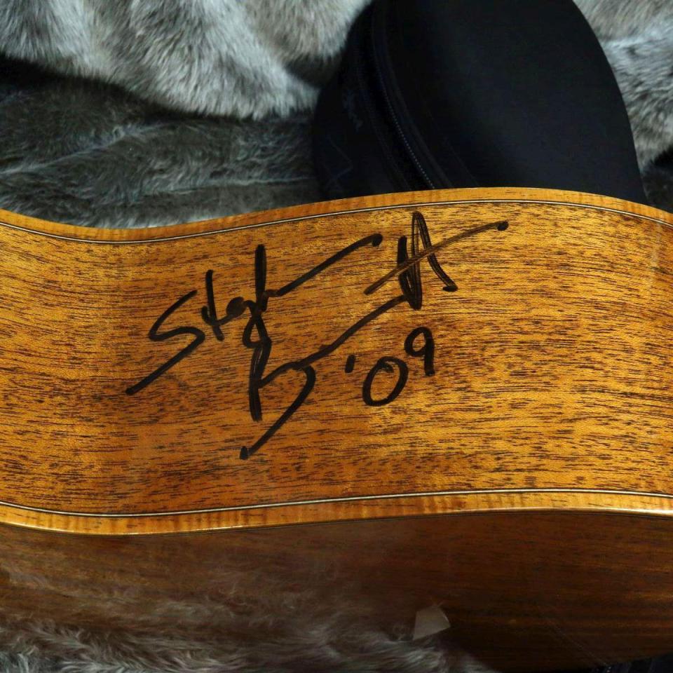 ボディトップ指板脇にはトミー・エマニュエル氏のサイン(薄れている部分あり)、ボディサイドにはトミーとも交流のあるステファン・ベネット氏のサインも見られます。