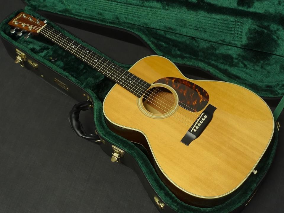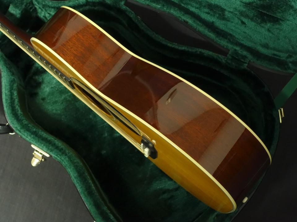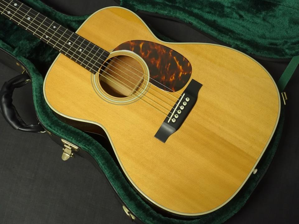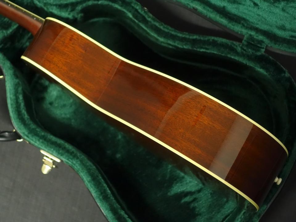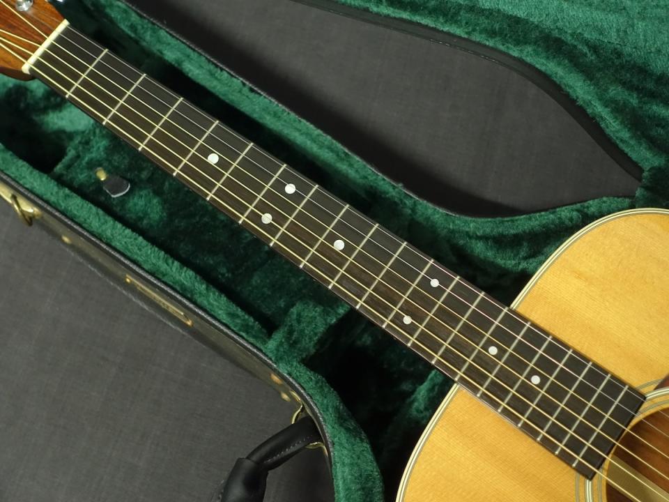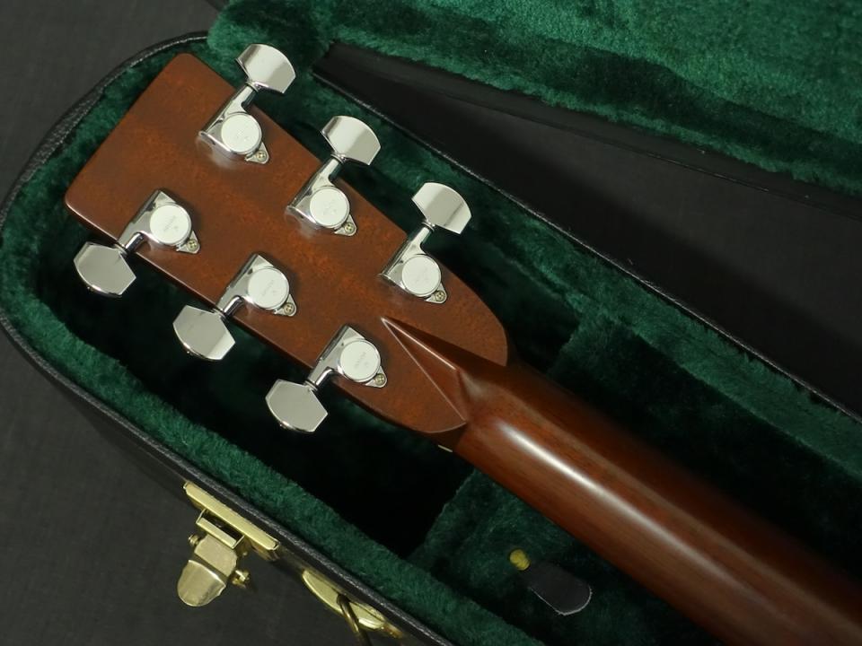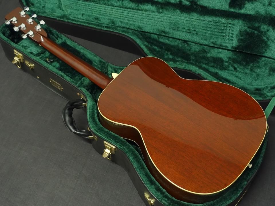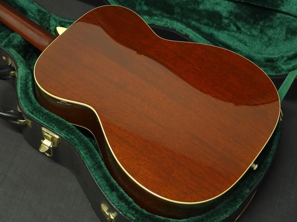 詳細な資料がありませんので外観からの判断となりますが、スプルーストップ、マホガニーサイド&バックを使用した000サイズのボディに、マホガニーネック、エボニーフィンガーボードをセットしたウッドマテリアルと思われます。