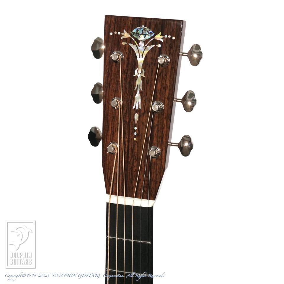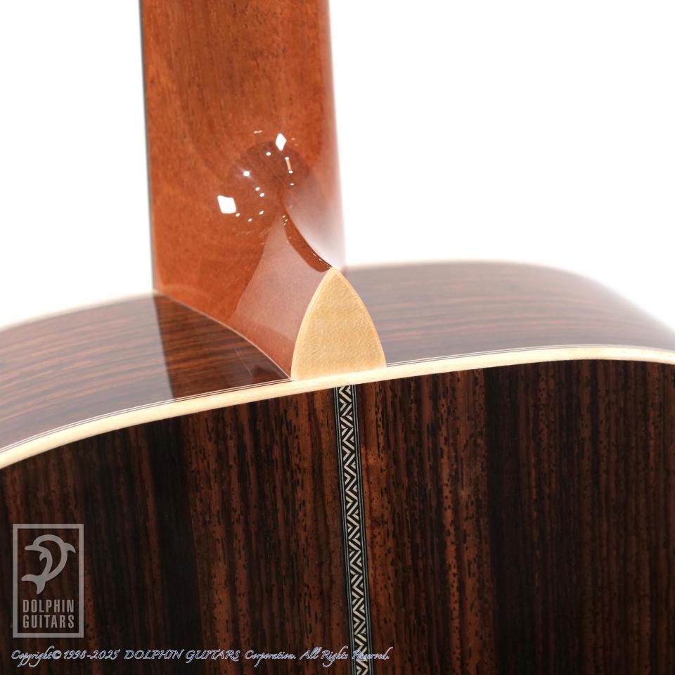 その他:ヘッドトーチインレイ、43mmナット幅、632.5mmスケール、牛骨ナット・サドル、ヘリンボーン&メイプル・バインディング