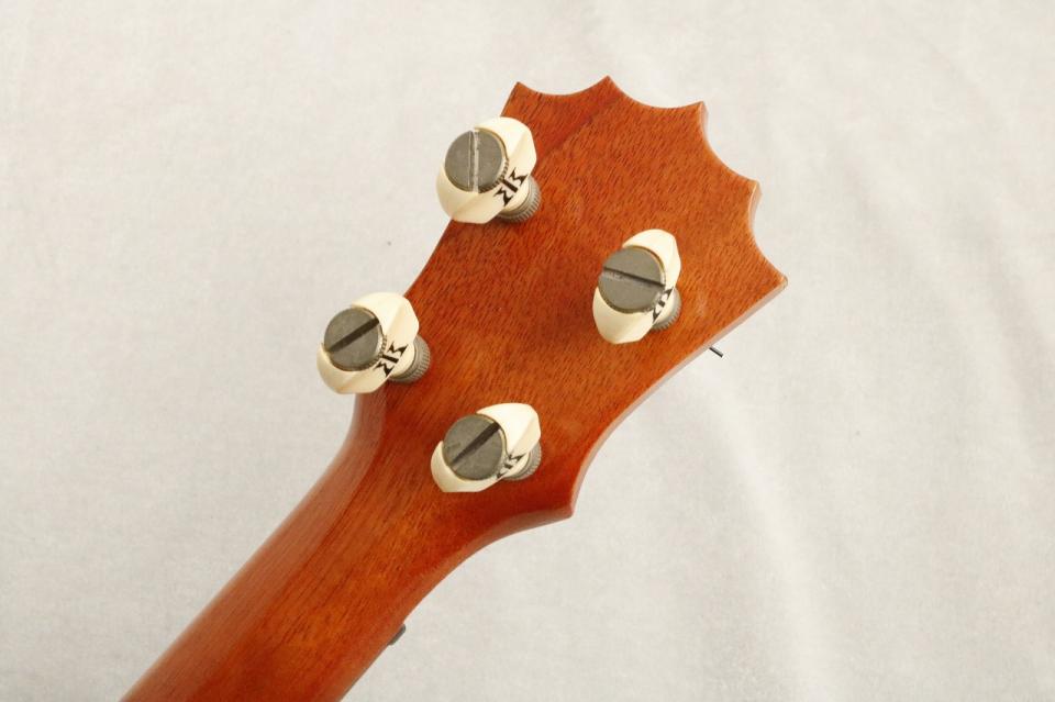 ボディと指板・ブリッジに上質なハワイアンコアの単板、ネックにはマホガニー、ナット・サドルはエボニーを使用したVintageウクレレの仕様に近い木材の組み合わせです。ボディ全体の塗装は杢目の凹凸が分かる程に薄く、セミグロス仕上げになっています。指板とブリッジには白のドットインレイ。ペグはコアロハロゴのフリクションタイプのペグ。使用にあたっては少々の慣れを要しますがシンプルな構造な為、慣れてしまえばチューニングからメンテナンスまで長く使用できるペグです。