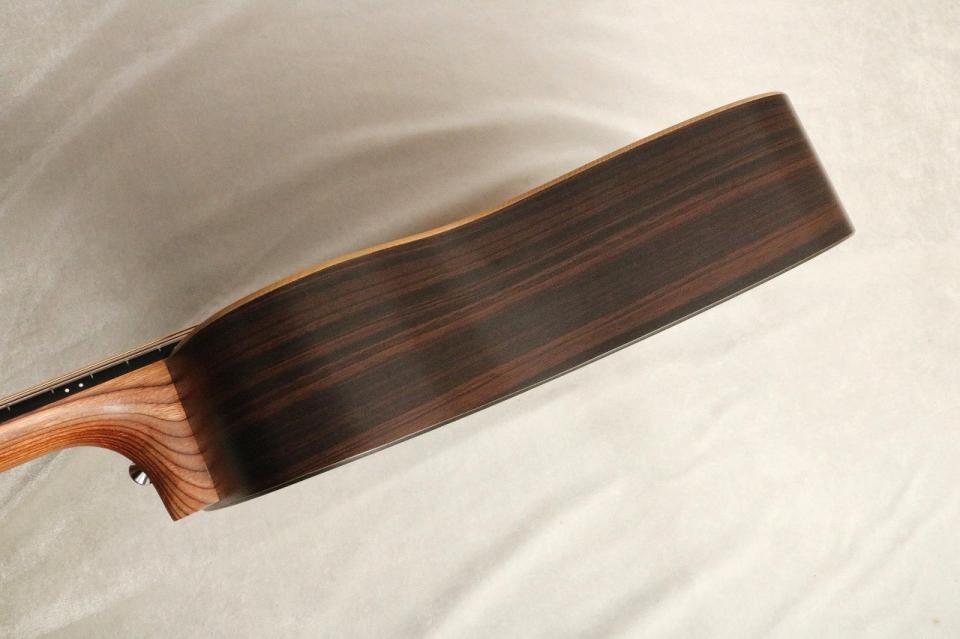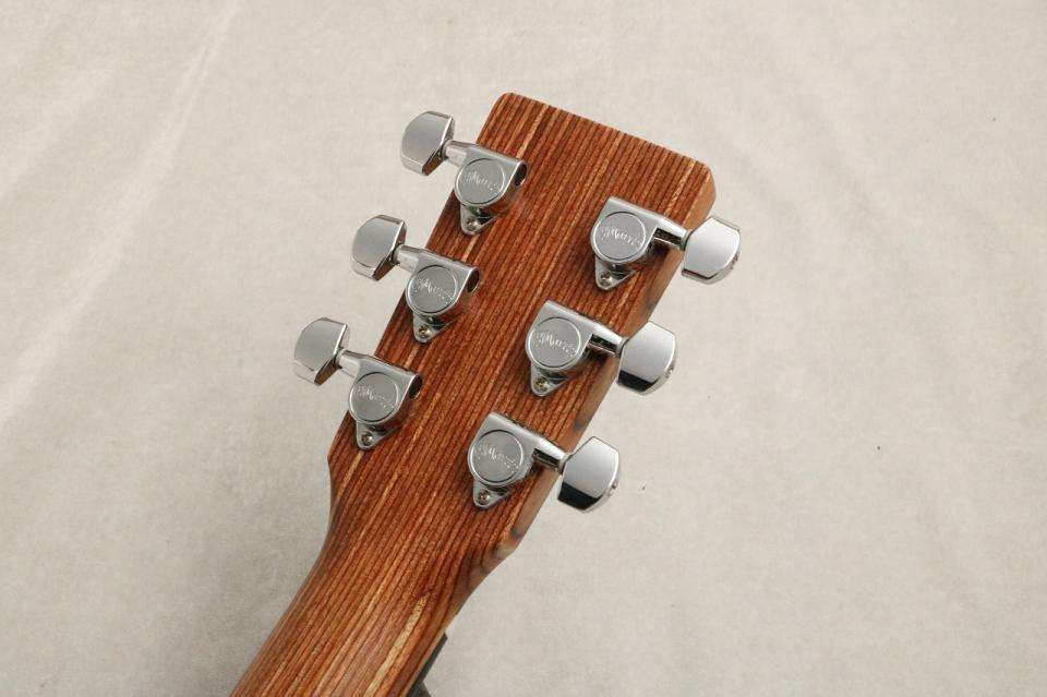 トップに細かな傷があるものの概ね状態良好。弦高は12フレット上6弦側:約3.0mm、1弦側:約2.1mmと数値としては少々高めですが、サドル高も6弦側下:約4.0mm、1弦側下:約3.0mmと余裕のある状態ですので弦高調整も可能です。LXシリーズの中でも生音に拘りたい方へ、お部屋で気軽に弾ける一本としても、お出かけに担ぐトラベルギターとしてもオススメのモデルです!同時に販売していたストラップ、レザータグ、記念コースター(スプルース材)が付属しており、フルセットが揃った状態での中古品!中古市場でも希少なモデルです。是非この機会にお手に取って見てください!