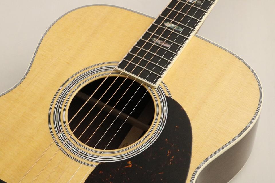 圧倒的なパワーを誇るグランドオーディトリアムボディの希少なモデル。1985年にクリス・マーティン4世のプロジェクト、『新時代のドレッドノート』計画により誕生した知る人ぞ知る名機です。伝統的なくびれの強いボディサイズとドレッドノートサイズに近い厚みを持った容積の大きいボディから生まれる響きは圧巻。さらに抱えた時のフィット感もあり演奏性にも優れています。スプルーストップとインディアンローズウッドサイドバック。ボディからネックへの響きの伝達に優れたダブテイルネックジョイント、グローバー製ゴールドのギアぺグ、ネックはセミグロスフィニッシュに仕上げられた近年評価の高い薄めのHigh performance Taper のネック。サウンドホールの口輪にStyl41の装飾が施され、ヘッドプレートには憧れの縦ロゴ『C.F Martin』が輝いています。Style28から41、000サイズからドレッドノート、そのバランスをうまく詰め込んだ希少なモデル。優れたサウンドバランスから多様なインスピレーションを必要とするシンガーソングライターやセッションプレイヤーへおススメのモデルです。J-40を含むMartinスタンダードシリーズは2025年から新仕様に変更がされています。この個体は2024年までの旧仕様の個体。ヘッド角度やネックボリュート形状、ブリッジピン素材、ブレーシング形状が旧仕様になっており力強く太いサウンドが魅力。細かな変更ではありますが、もとより希少なJ-40と少しずつ希少になっていく旧仕様の魅力を手に取れる最後の機会かもしれません。是非この機会にお手に取ってみてください。