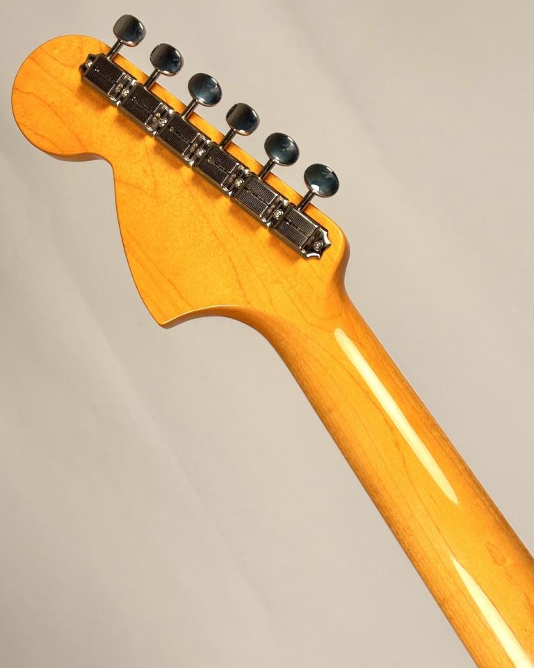 本モデルはそんなジャズマスターのバインディングブロック仕様、ストラトキャスターなどと同じラージヘッドの1966年後半の豪華な仕様を再現したモデルです。