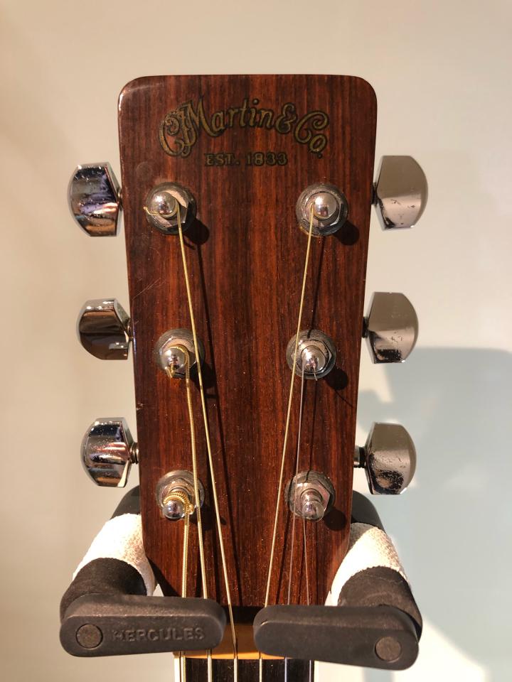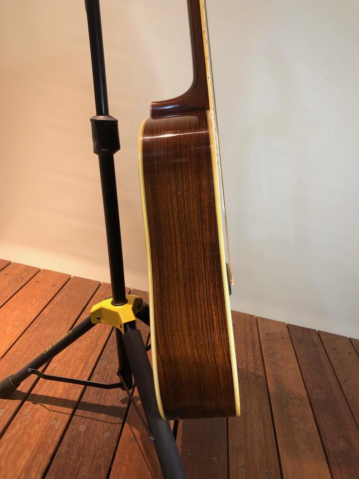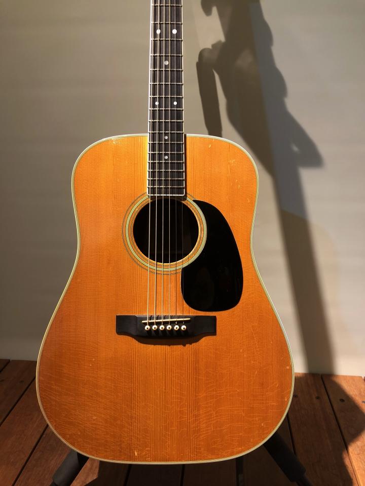 トップ板下部あたりに細かなウェザーチェックが入っており、製造から半世紀近く経ったヴィンテージの貫録を醸し出しております。音色はD-35らしいふくよかで、歌声にそっと寄り添うような音色を奏でます。