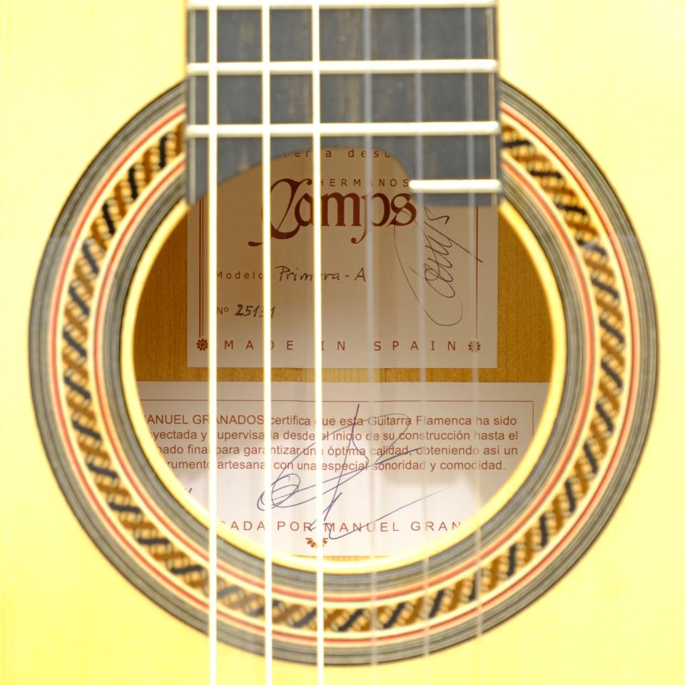 このフラメンコギターは、Manuel Granadosによって1本ずつテストされ、その基準をクリアしています(サイン入りラベル付き)。