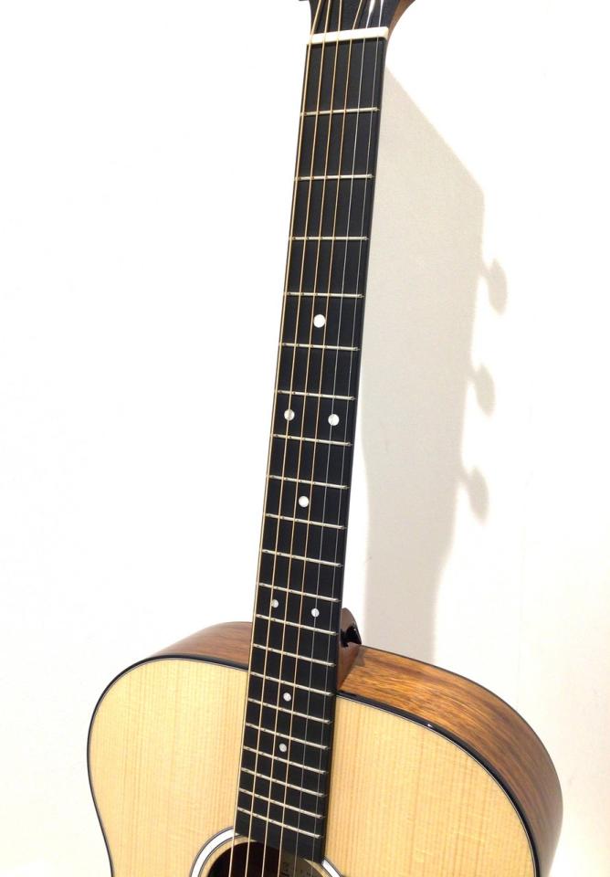 ボディサイズは000(トリプルオー)。短めのネックを持ち、厚みの薄いボディから立ち上がりの良さと音量を兼ね備え、ピック弾きからフィンガーピッキングまで幅広く対応する、バランスのとれた抱えやすいサイズです。