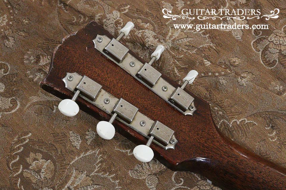 内容は、ペグがオリジナルと同形状の物に、ポットが70年代のCTS製にリプレイス、また、ボディ・サイドのアウトジャック部の木部にクラック修正がされており、ジャック・プレートが装着されていますが、ピックアップ等の主要部はオリジナルです