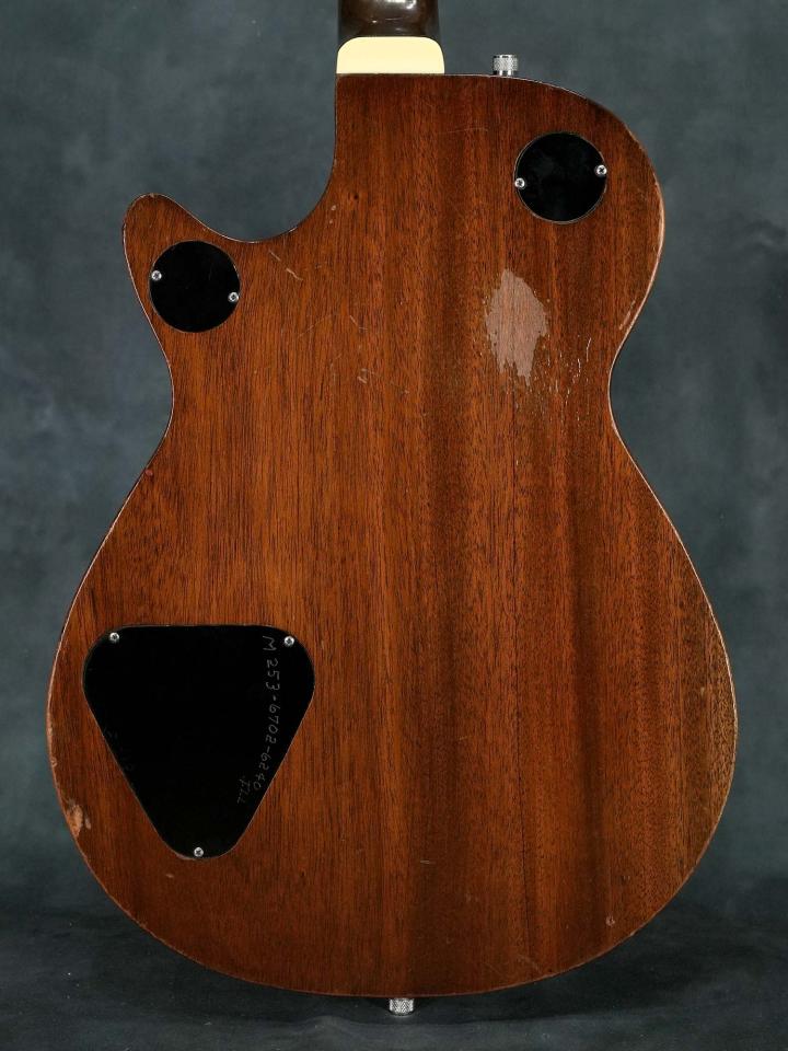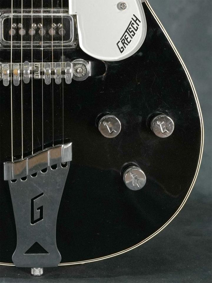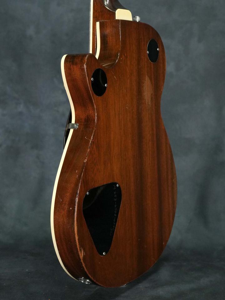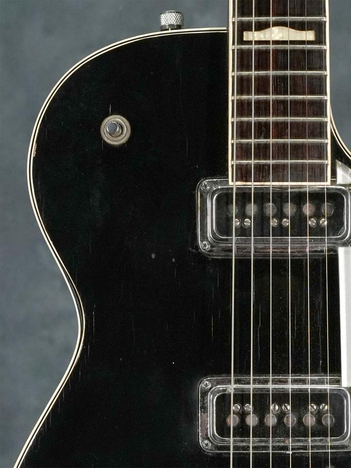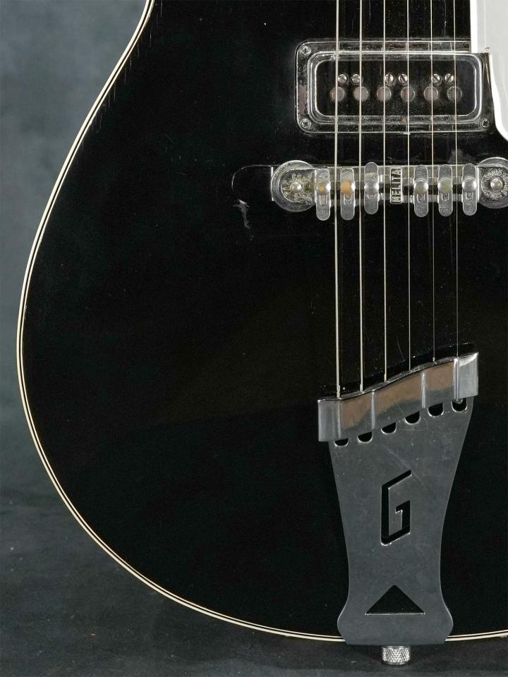「Solid Body」モデルとして発売されながら実際は中をくり抜いた中空構造により独特のアコースティックな響きが特徴のGretsch Duo Jet、エレキギター黎明期と言う事もあり発売から短いスパンで仕様が変わりますが、シングルコイルのダイナソニックピックアップに加えて1957年頃の極短い期間のみ採用された「ハンプトップインレイ」のモデルはThe BeatlesのGeorge Harrison氏の愛用が有名で、氏はバーブリッジへの交換やBigsbyアームの取付等が行われておりますが、本器はこの年代のGretschに良く見られるネックジョイントのトラブルやBigsbyの取付跡も有りません。
