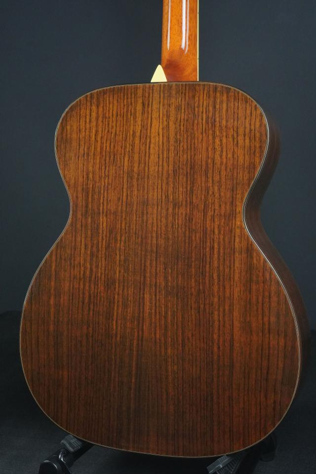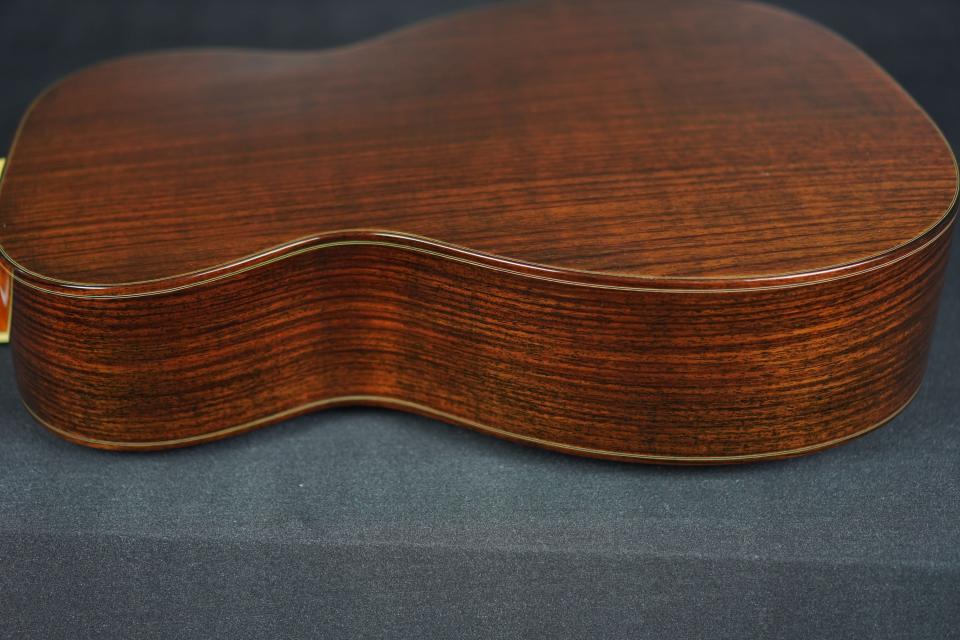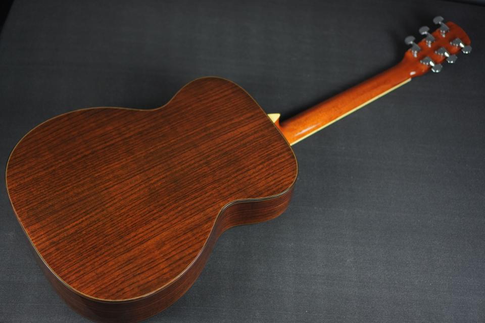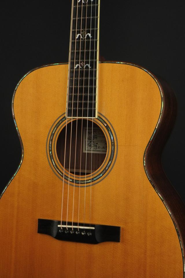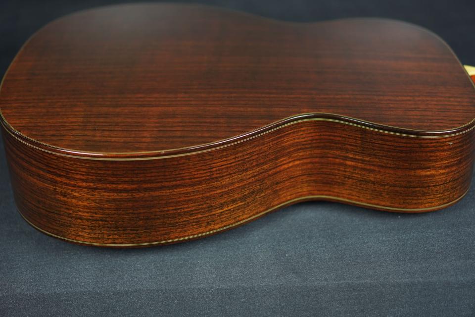 サウンドは、広いレンジで非常に剛性感が高く、綺麗に整った響きを持ち、OMサイズとしては強いピッキングでも大らかに受け止めてくれる許容量の深さが有り、尚且つOMらしいメリハリのある引き締まったトーンを併せ持った、深遠なサウンドです。