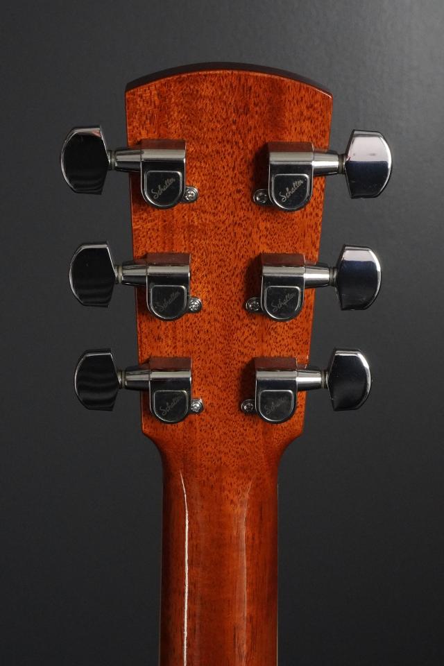 ナット幅44.5mmのマホガニーネックは薄めのシェイプで、テクニカルなフィンガースタイルでも握りやすいと思います。