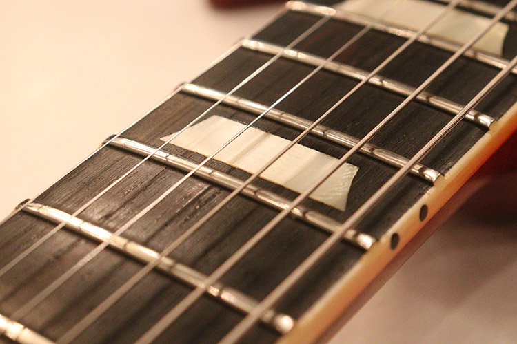 指板には、当時のヴィンテージ・ギターの様な、黒くて良く目の詰まったハカランダ材を使用!