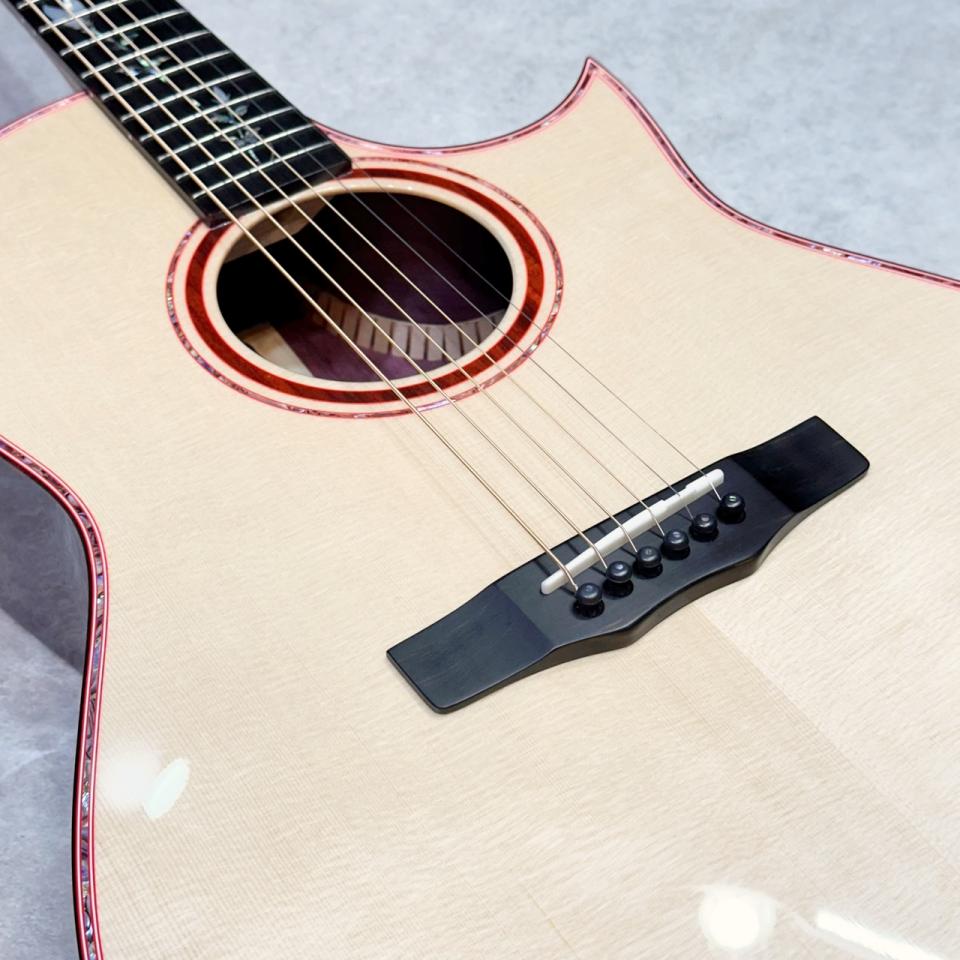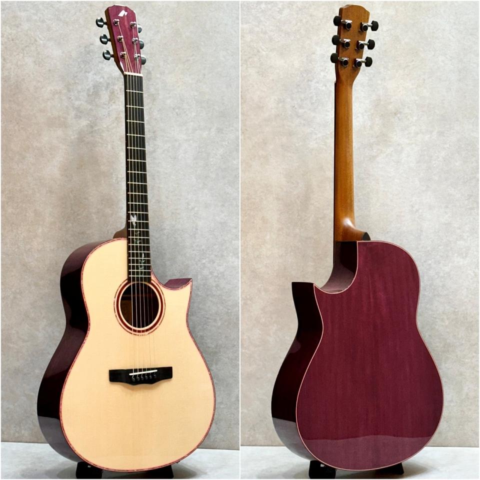 熟練の職人技、希少なパープルハート材の美しい紫色と銀目杢、優れた演奏性が融合した特別なギターです。