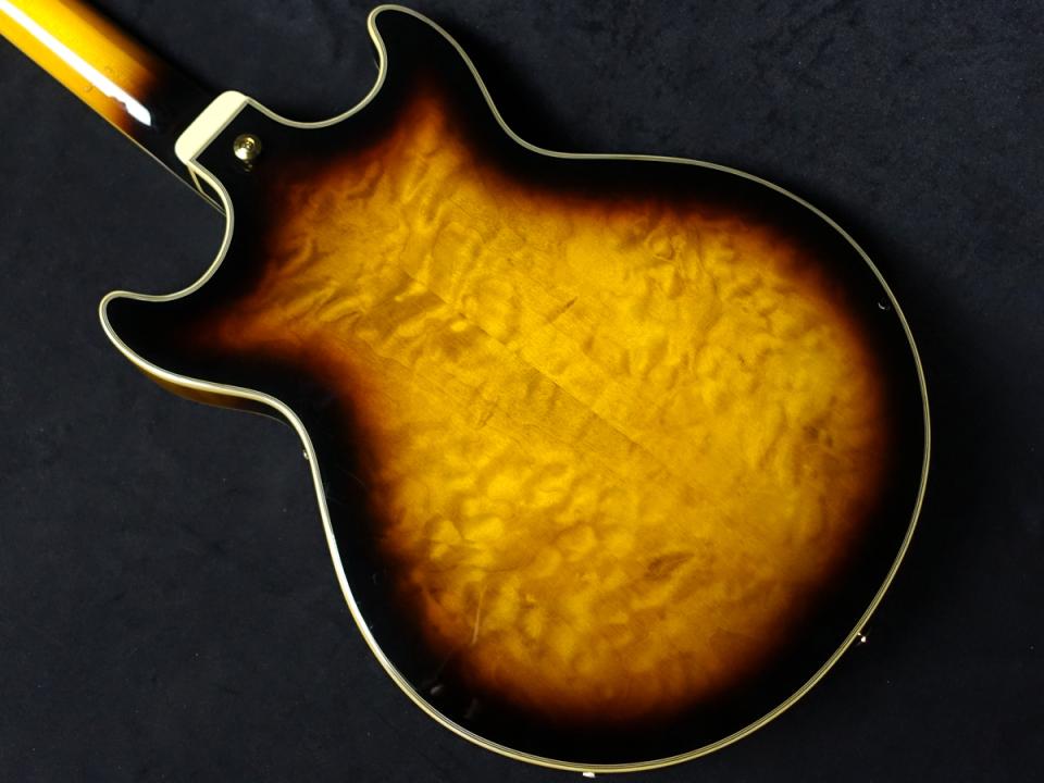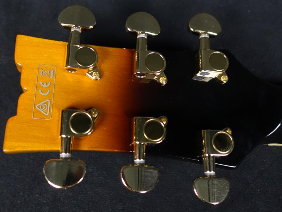 サンバーストカラーにキルトメイプルの木目、ゴールドで統一されたハードウェアがマッチしてラグジュアリーな印象を与える出立となっております。