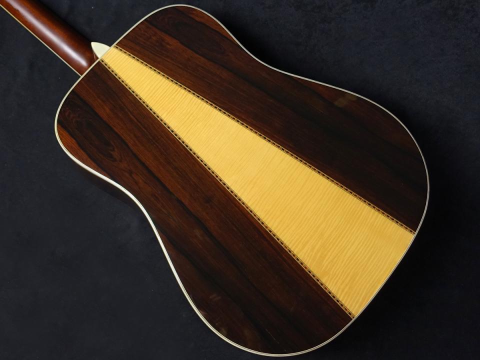 ボディバックはD-35を彷彿とさせる3ピース構造となっており、中央には美しい杢目のメイプルがラグジュアリーな印象を与える出立となっております。