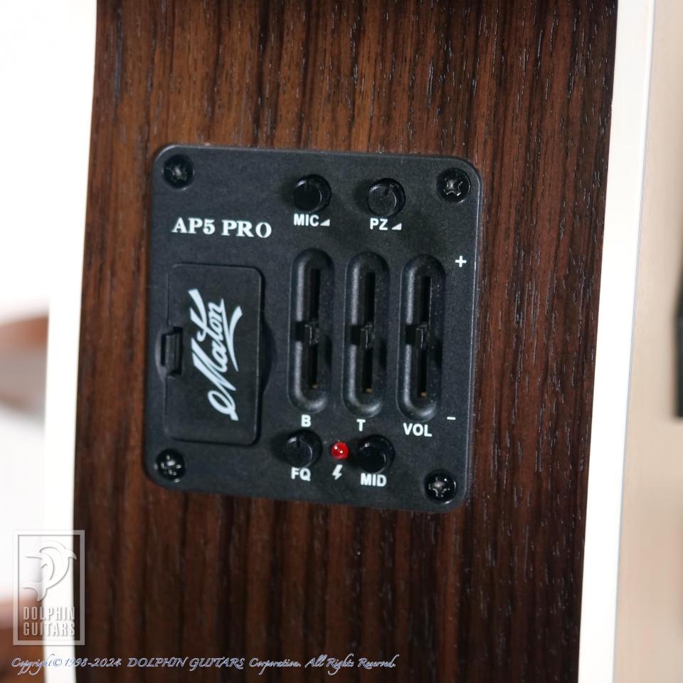 メイトンの魅力の一つでもあるピックアップシステム。メイトン社オリジナルのAP5-Proは特殊構造のアンダーサドルPUとコンデンサーMicをMixし、リアルなアコースティックサウンドをアウトプットします。