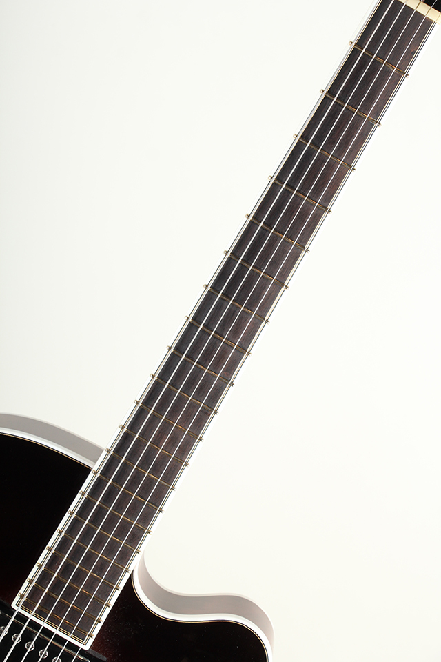 アーチトップのスプルーストップに、フラットバック構造のマホガニーサイド&バック、マホガニーネック、エボニー指板という上質なウッドマテリアルで構成されています。塗装はグロスフィニッシュとなっております。