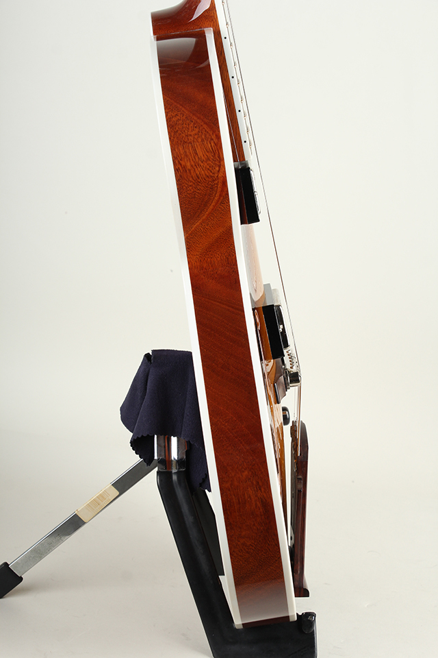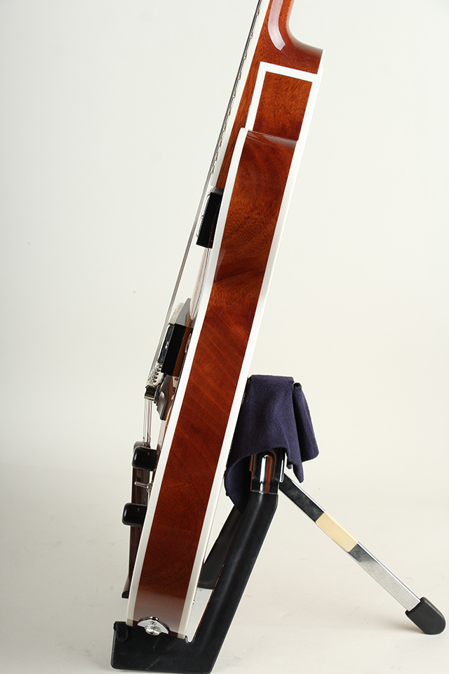 セミアコ構造でありながら、サウンドはフルアコ寄りの豊かな質感を持ち、芯の太さと程よい甘さが同居したトーンが魅力です。セミアコならではの反応の良さや伸びやかなサスティーンが加わることで、スイートかつ立体的な響きを実現。セミアコとフルアコ、それぞれの良さが見事に調和した上質なサウンドを奏でてくれます。