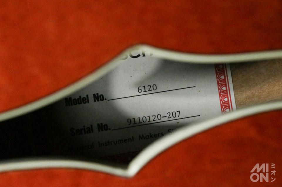 そんな老舗・グレッチの代表モデル、「6120」 が入荷しました。1991年製、重量は約3.82kgです。