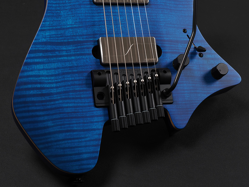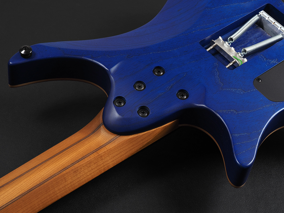 本機、Boden Prog NXは、チェンバー加工されたSwamp Ash材をボディに、ハイグレードのフレイムメイプル材の突き板を張り合わせた無垢のメイプル材をトップに採用。またネック材にはカーボン補強されたメイプル材を、指板材にはリッチライトを使用しています。