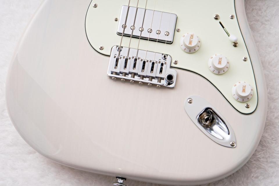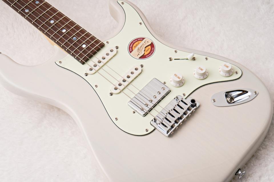近年アッシュ材は価格高騰が続いており、他ブランドではピース数を増やしたり、ブロンドやナチュラルカラーの製作を控えることで供給を維持しているケースも多い希少な木材となっています。本モデルでは、その高価なアッシュ材を 2ピース構成かつシースルーカラー で採用しています。