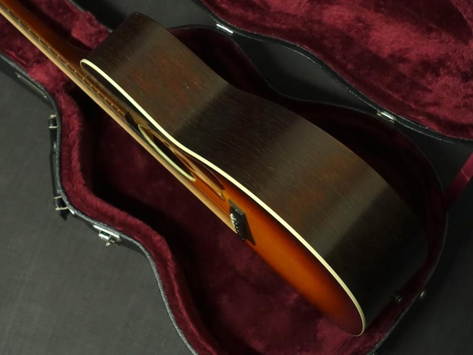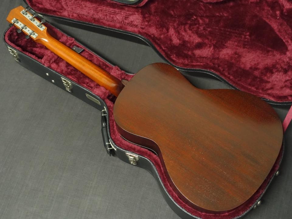 ソリッドスプルーストップ、ソリッドマホガニーサイド&バックのボディに、マホガニーネック、ローズウッドフィンガーボードをセットしたウッドマテリアル。ネックシェイプはヴィンテージライクなVシェイプでナット幅は約44.5mm。Xブレイシング&トラスロッド調整が可能な仕様です。