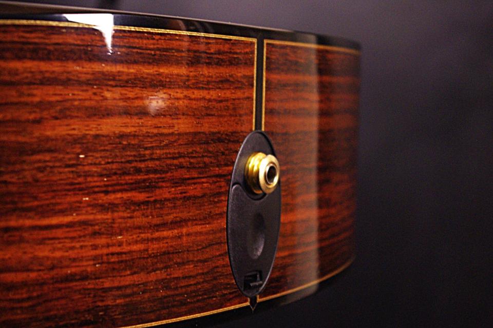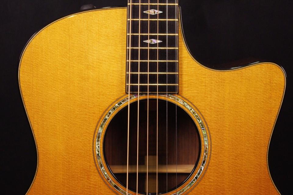 トップ ウェスタンレッドシダー、サイドバック インディアンローズウッド、指板・ブリッジ エボニー、ネック マホガニー、オリジナルゴールドペグ、 カッタウェイ、Xブレーシング、ESピックアップシステム、