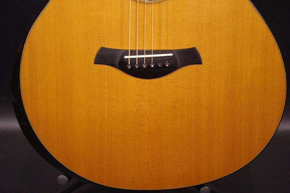 テイラーの限られた職人によって生産されるR.TyalorのStyle-1が極上コンディションで入荷しました!!トップにはウェスタンレッドシダー、サイドバックにはインディアンローズウッド、指板ブリッジにはエボニーの厳選された材を採用、テイラー独自のエクスプレッションシステムも搭載されておりライブでもお楽しみいただけるのも今回のモデルの魅力です!!サイズはグラウンドオーディトリアムより少しだけ大きい抱えやすいサイズでカッタウェイ、エルボーコンターが施されています!ボディ内部のラベルから2007年に生産された個体で僅かな傷、使用感はありますが目立った傷のない美品で演奏性、サウンドも大変優れています!ネックヒールへはストラップピンが装着されています。ナット幅は約43mm近くのやや薄めのグリップになります。ネックのアングルも理想的でトラスロッドの動作にも余裕があります。フレットの減りも少なめで今後も気にしないでお使いいただけます。弦高は12フレット6弦側で約2.4mm、1弦側で約1.7mmの高さでハイポジションまで押さえやすく調整しています。サドル残もありますので将来の微調整も十分可能です。シダートップとローズウッドの相性も抜群で柔らかく温かみがあり非常に癒されます!低中音も太くハリ、伸びがありストロークも纏まり心地よく聴こえてきます!!是非この機会にお試しください。オリジナルハードケース付き