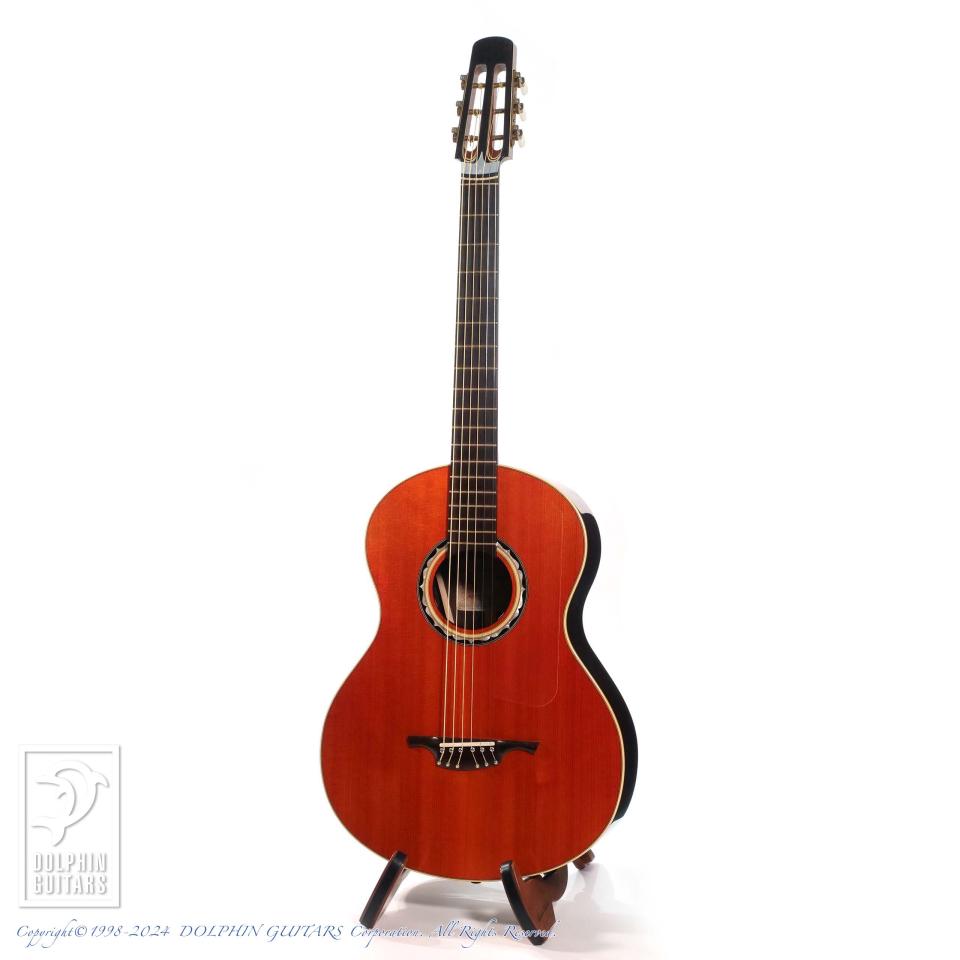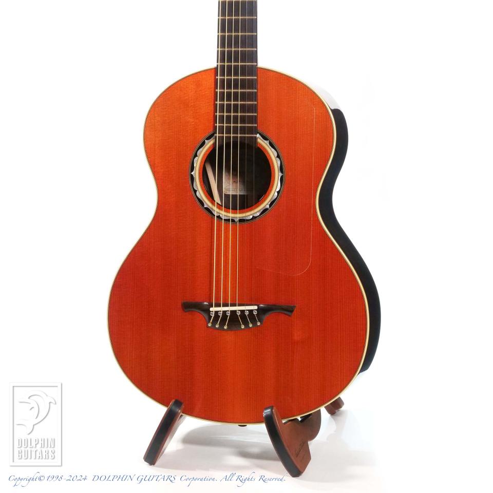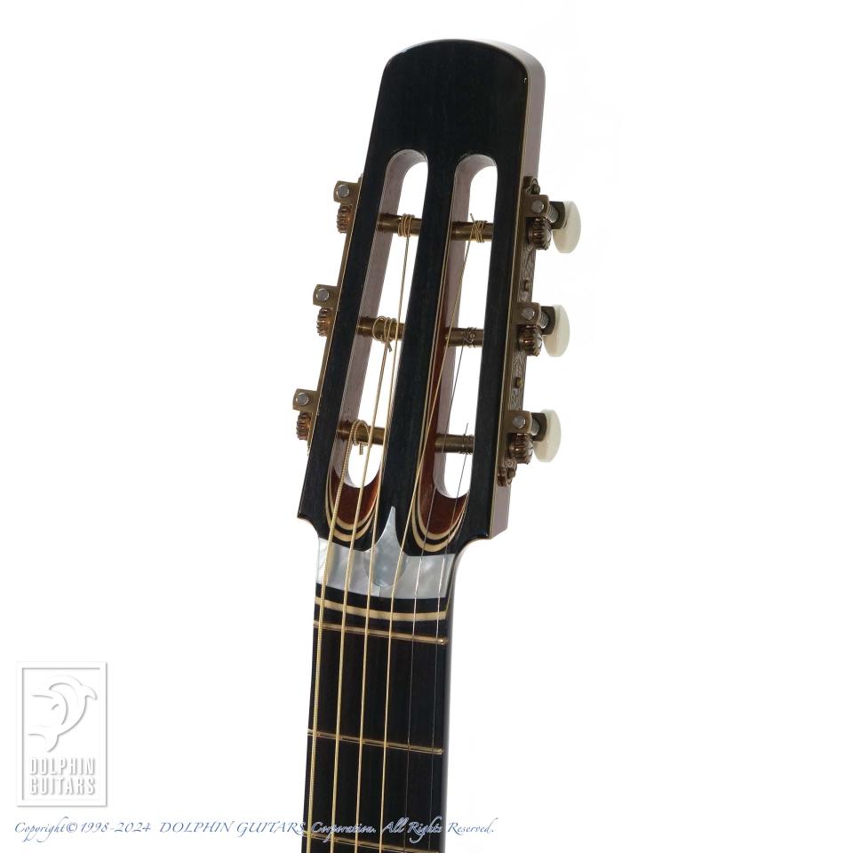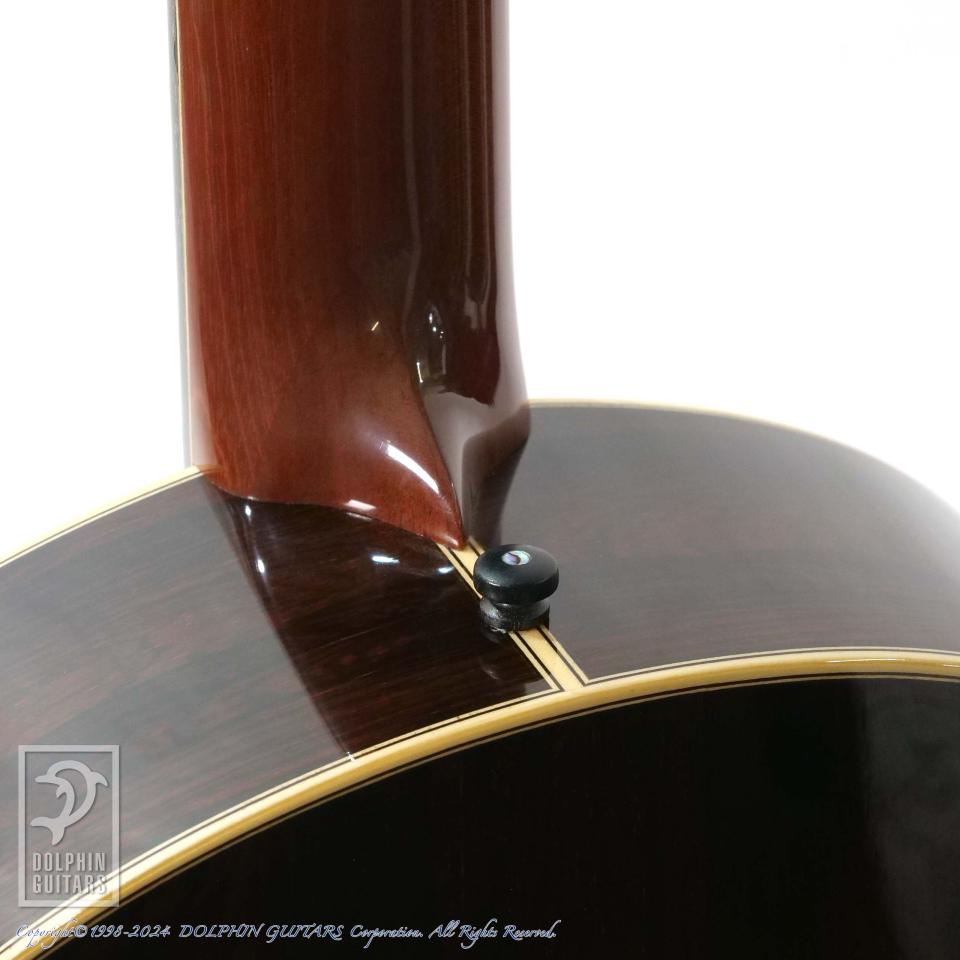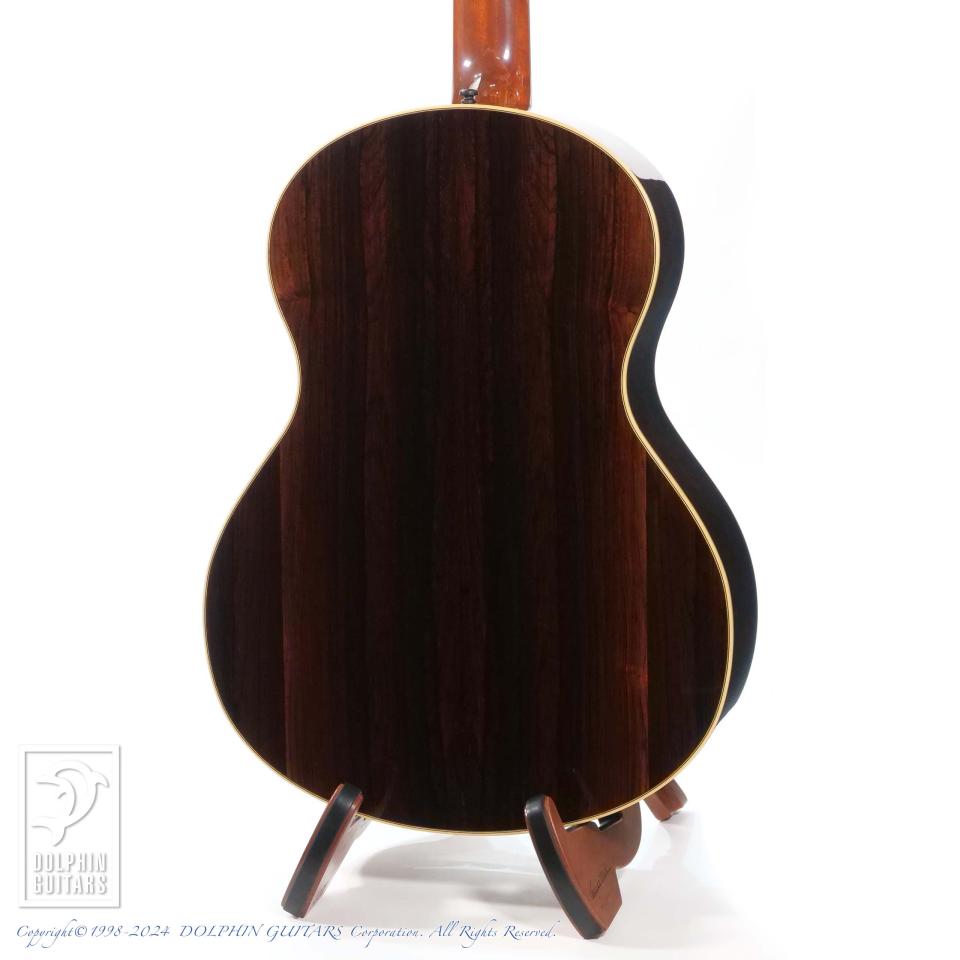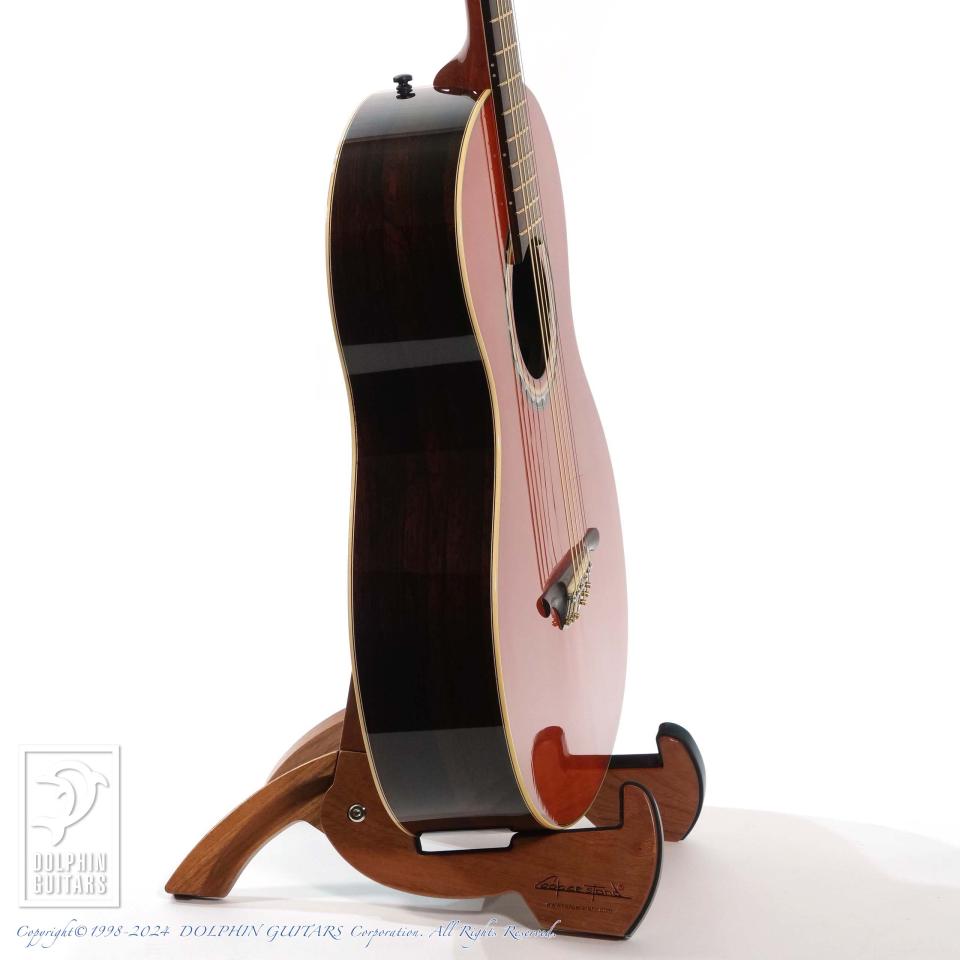 そして、ルシアーSteven Kauffman(スティーブ・カフマン)とのパートナーシップで製作されるアコースティックブランドがKlein Acoustic。本器はあの"Joe Walsh"(The Eagles)がオーダーしたパーラーモデル、365 "Joe Walsh" parlorのUSED品。90年代に本人使用機を含みおそらく3本のみ製作されたといわれる幻のモデルを現代に復活させた一本です。