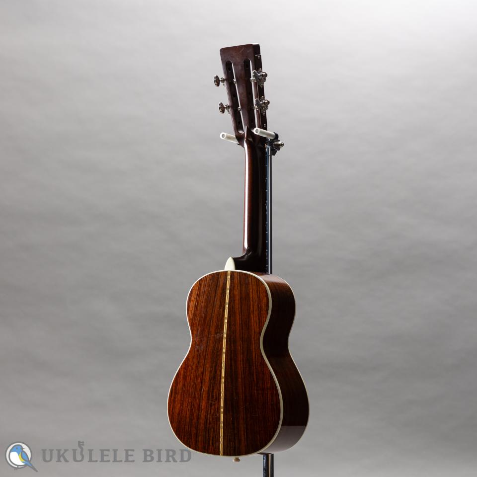 本楽器はそのT-28ブリッジ駒を通常の4弦仕様のテナーウクレレとして使えるよう形状をそのままに交換し、ペグもセイレン社から支給いただいたGotoh製のスロテッド用ペグを取り付けました。改良の作業を担当したのは広島県のルシアー、Sun Guitarsの国岡光樹氏です。国岡氏はマーチンギターの輸入代理店で25年間リペアの主任を務めた後、独立後もマーティンのビンテージギターの修理をこなすマーティンを知り尽くした人物です。