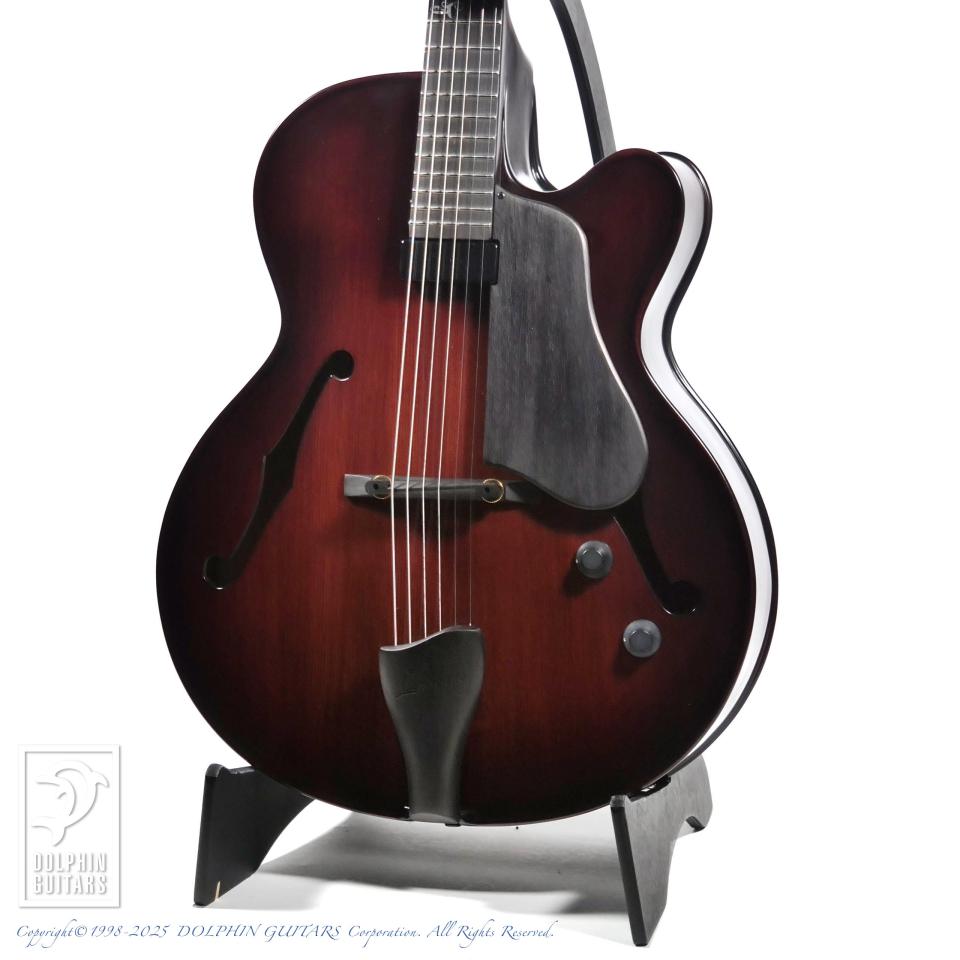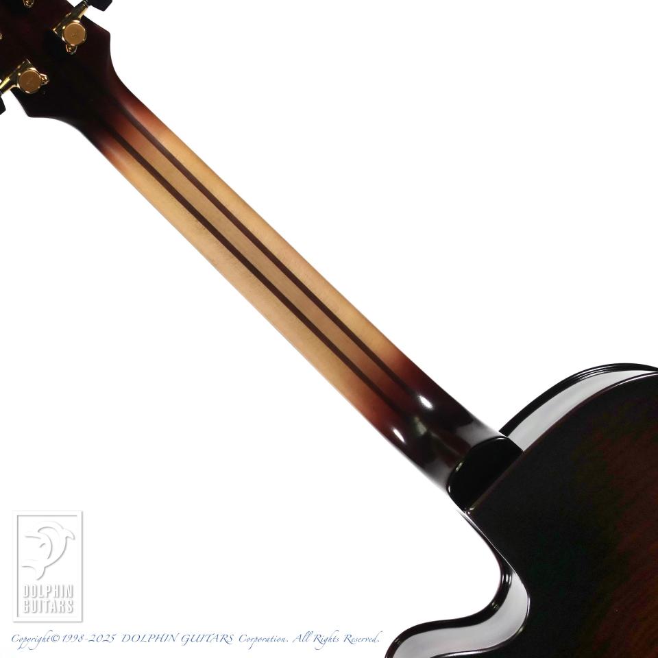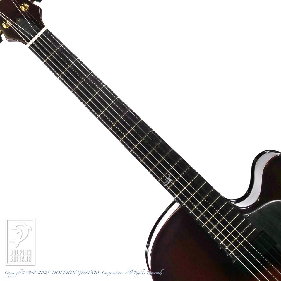 伝統的なバイオリン工法から生まれた美麗な職人の削り出しによるフルアコースティックギター。17インチサイズのボディはバイオリンを作る工程と同様に、トップ、バックは職人の手によって削り出されています。強度を高めた5plyネックにエボニーフィンガーボード、ふくよかなボディの鳴りを活かすためにオリジナルのフローティングピックアップLS-JFを開発して搭載。バイオリンと同様ホディの鳴りを優先するニス仕上げを採用し、アンティークバイオリンのような高級感と、プレス材では得られない艶やかで豊かなトーンを獲得しています。