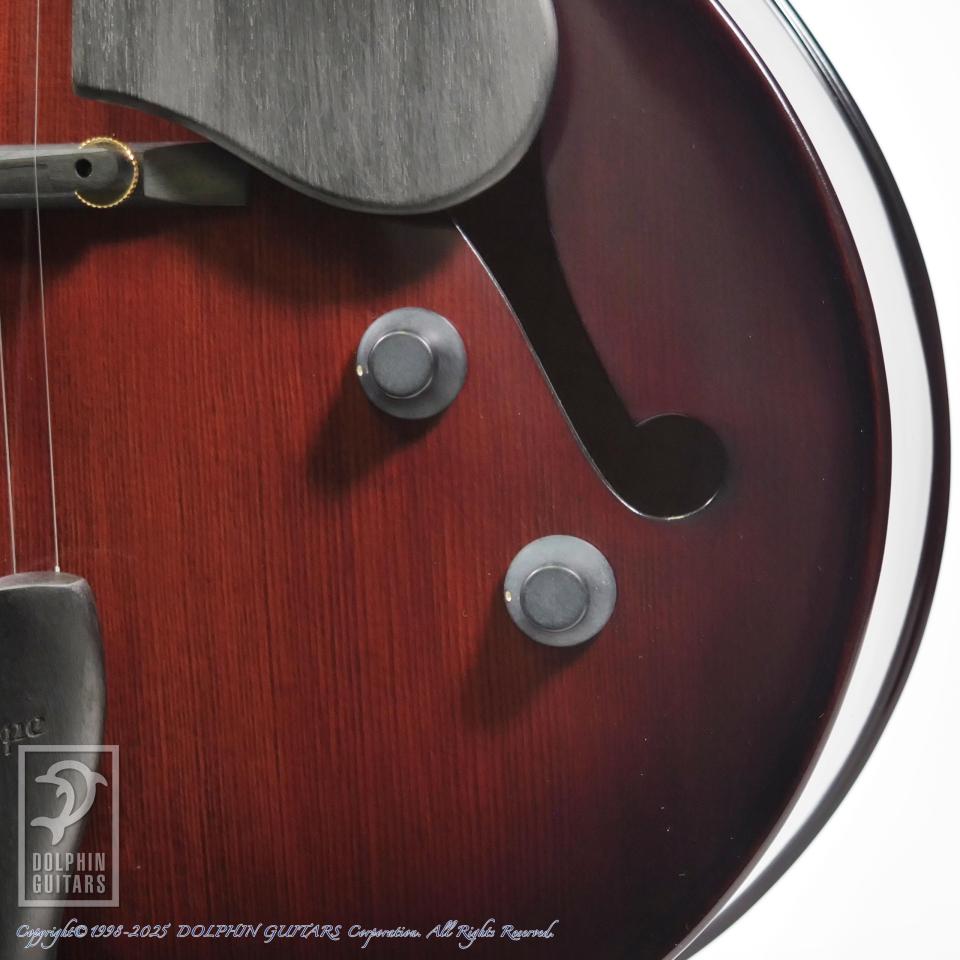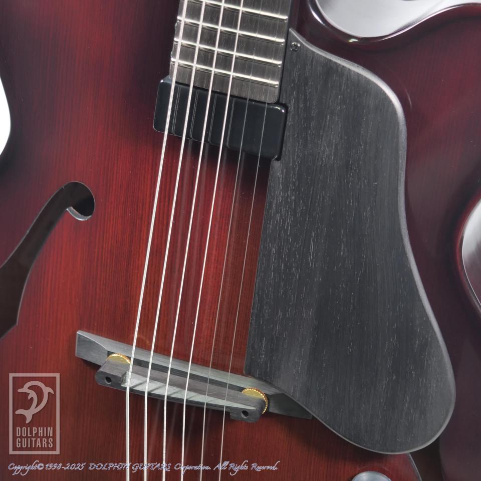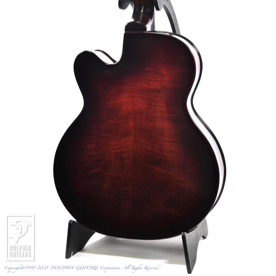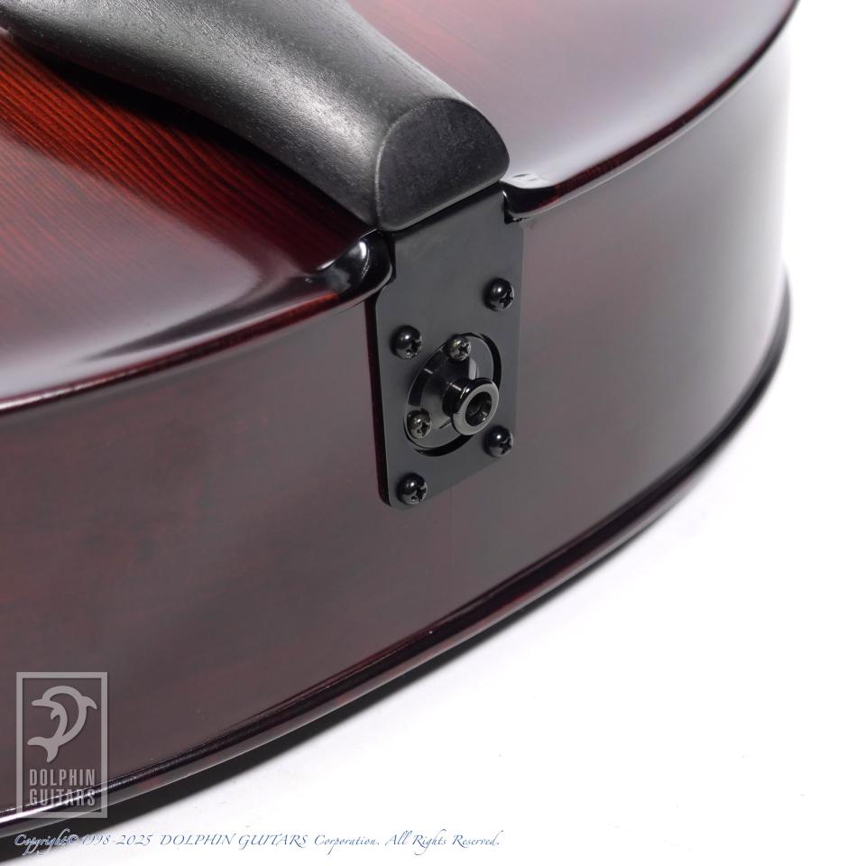 伝統的なバイオリン工法から生まれた美麗な職人の削り出しによるフルアコースティックギター。17インチサイズのボディはバイオリンを作る工程と同様に、トップ、バックは職人の手によって削り出されています。強度を高めた5plyネックにエボニーフィンガーボード、ふくよかなボディの鳴りを活かすためにオリジナルのフローティングピックアップLS-JFを開発して搭載。バイオリンと同様ホディの鳴りを優先するニス仕上げを採用し、アンティークバイオリンのような高級感と、プレス材では得られない艶やかで豊かなトーンを獲得しています。