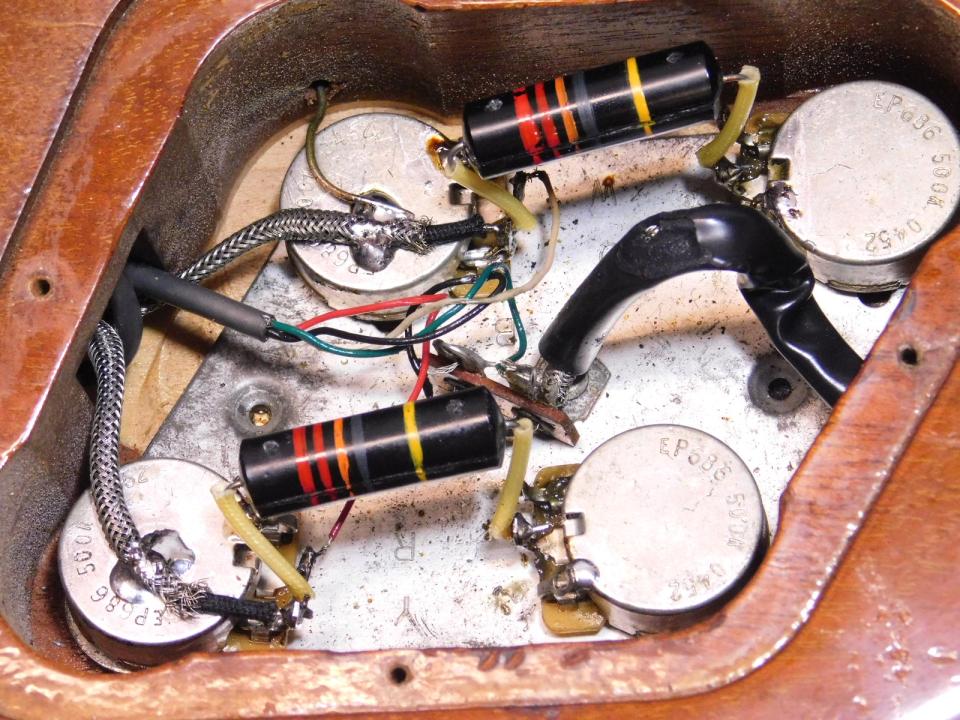 また、ノブやジャックプレートなどプラスチックパーツもオリジナルに近いルックスの物を使っており、こだわりのパーツチェンジですね。
