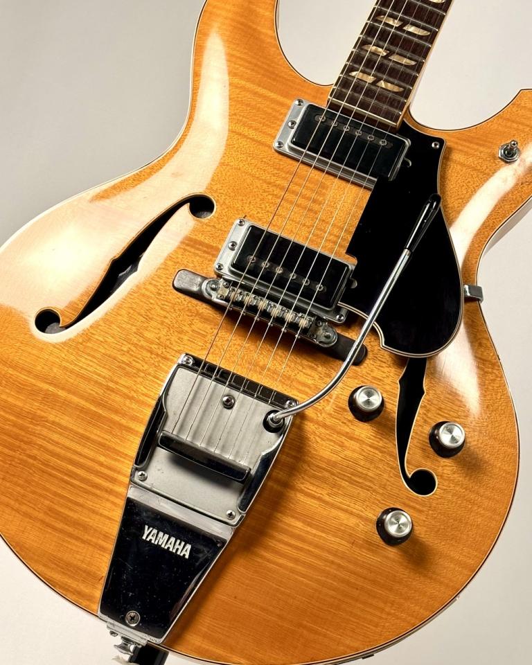 今回入荷いたしましたのは1967年製YAMAHA SA-50です。1967年から1972年の短い期間制作された日本製フルアコです。ハウリング対策のためにFホールに最初からカバーが付けられている扱いやすい一本です。