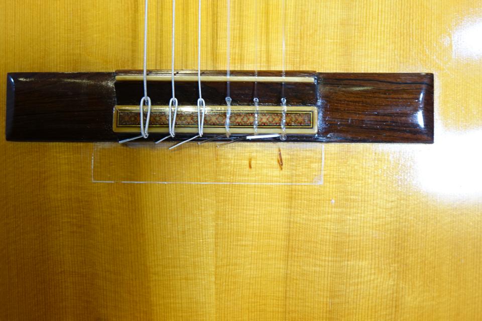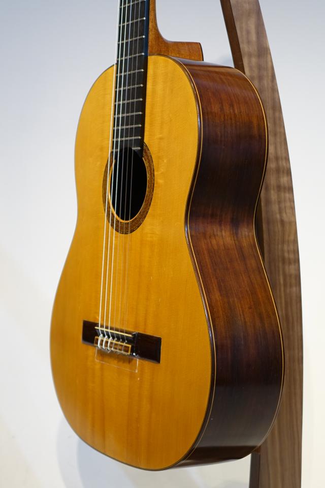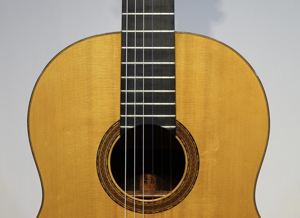 約20年の間、弾かれていなかったギターです。今後弾いていくことで、高音弦はこれから本来の音が出そうな予感をさせます。音色は、癖のない古風なスペインギターの音で、遠くまで届く遠達生を持っている楽器です。
