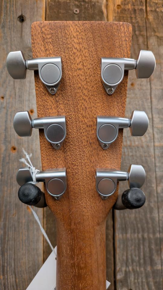 サテンのクローズギア・ペグとストラップピン、サウンドホール周りのインレイにより伝統的なデザインでありながらも、現代的なおしゃれな要素も感じさせます。