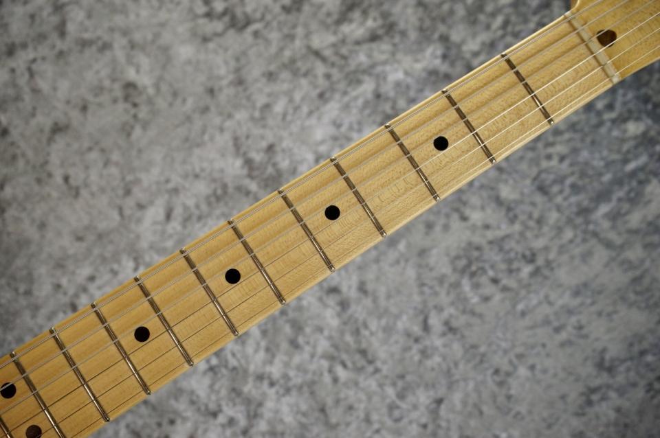 近年定番の9.5”Rの指板ラジアスにVintage Upgradeのフレットで滑らかな弾き心地となっております。