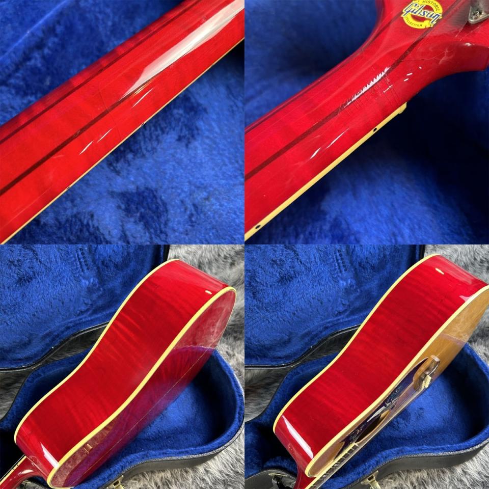 スプルーストップにサイド/バックとネックには美しい杢のでたフレイムメイプルを採用しております。