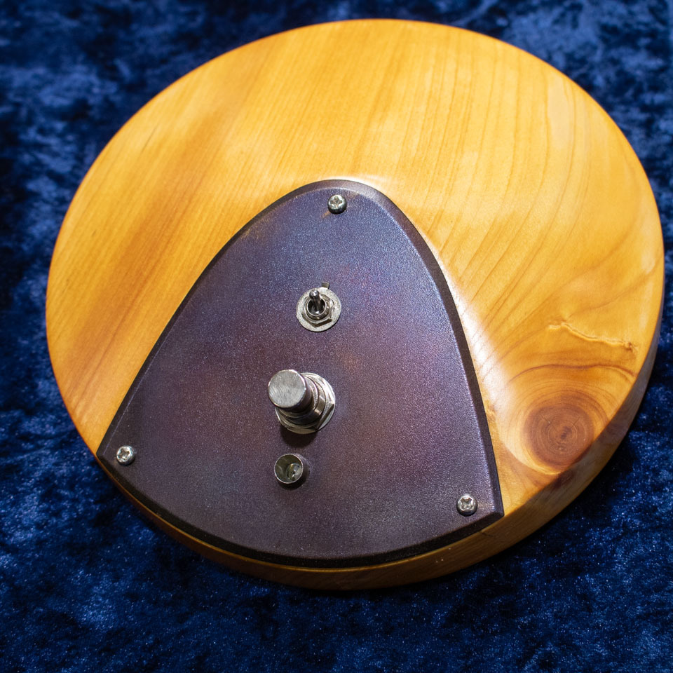 筐体表面には、2つの異なるトランジスタスタイルのファズ回路を切り替えるトグルスイッチと、ON/OFFを操作するフットスイッチのみを配置。ノブのないシンプルなデザインにより、ナチュラルウッド筐体の美しい杢目を最大限に楽しめます。
