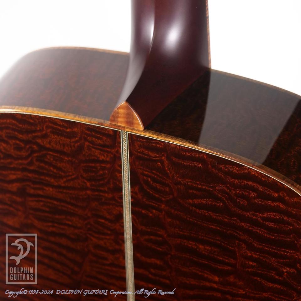 本器は正統派オーケストラモデルのワイドボディ仕様、OM Grand Quilted Sapele。