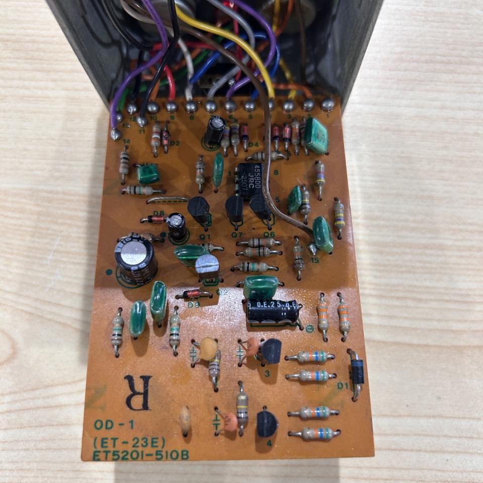1980年代前半頃に出荷されたOD-1。ボスが世に送り出した最初のコンパクトエフェクター。パンチのあるミッドレンジと適度なコンプレッション感で世界中のギタリストを虜に。コチラの個体はオペアンプにJRC4558DD搭載。052-281E基板です。