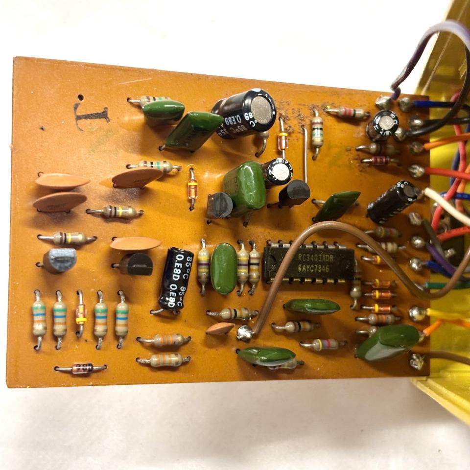 こちらの個体は1979年製、オペアンプに「RC3403ADB」、スケルトンスイッチ、銀ネジ、全角「ー」である最初期の仕様のモデルとなっています。