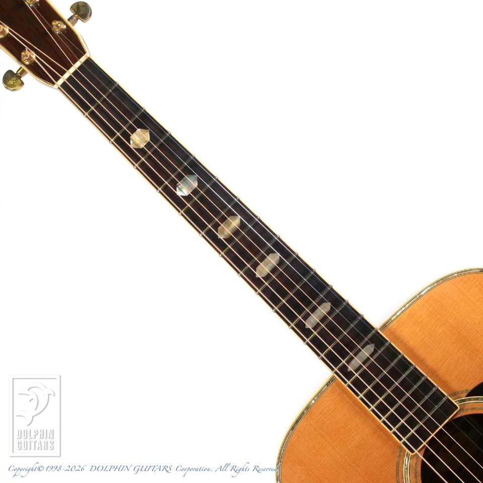 杢目の整ったスプルーストップに、落ち着いた色味のローズウッドを組み合わせた王道仕様。当時の国産ギターらしい実直な佇まいを感じさせます。