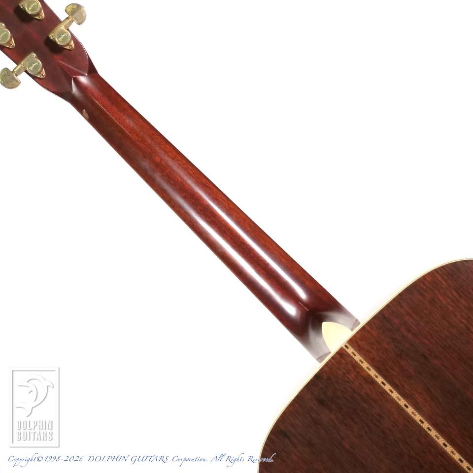 ドレッドノートらしい豊かな低音と、芯のある中域が魅力。ストロークでは力強く広がり、フィンガースタイルでは粒立ちの良い明瞭なトーンを聴かせます。ノンスキャロップならではのコシのあるダイナミックでキラビやかな響きが特徴です。素直なレスポンスと安定したネックグリップにより、コードワークからリードプレイまで安心してお使いいただけます。