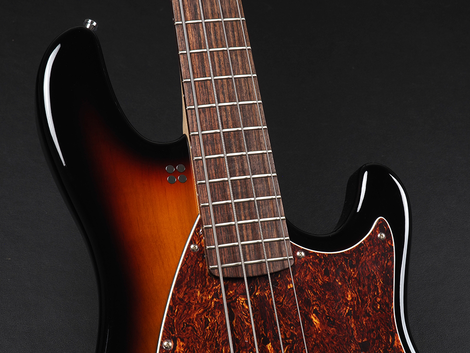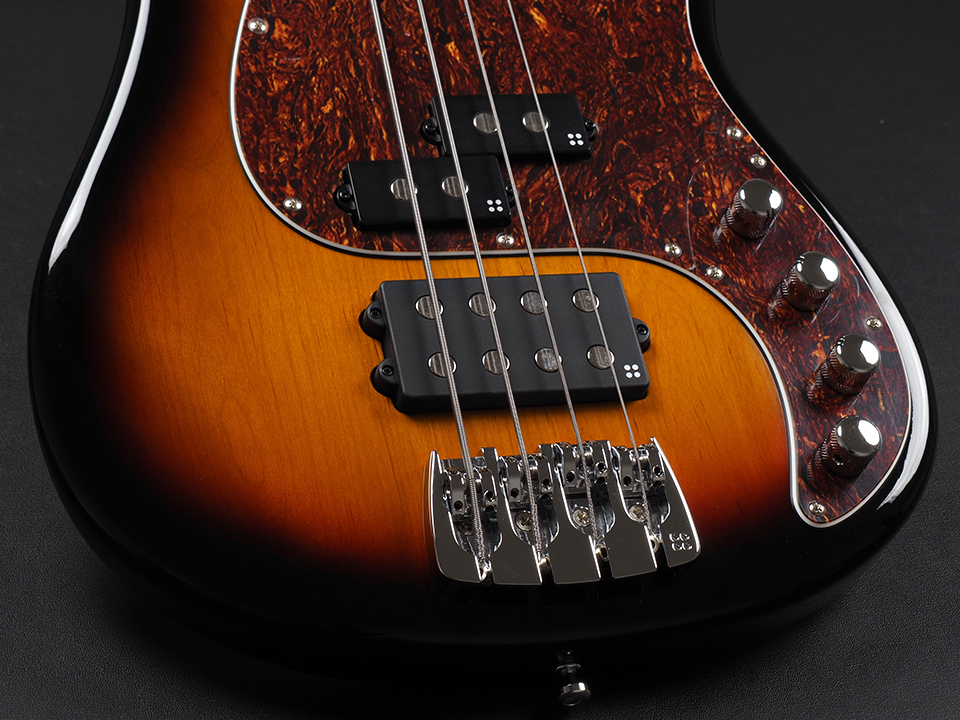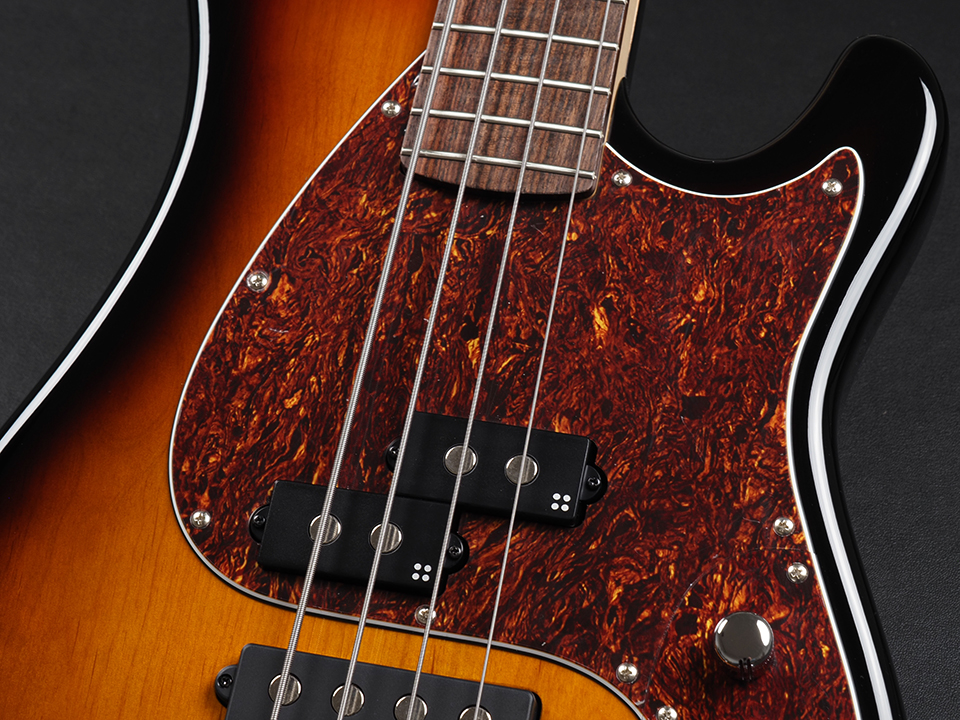 アルダーボディ、ボルトオンメイプルネック、ローズウッド指板にて構成され、オリジナルのPスタイルとMMスタイルのピックアップを搭載します。
