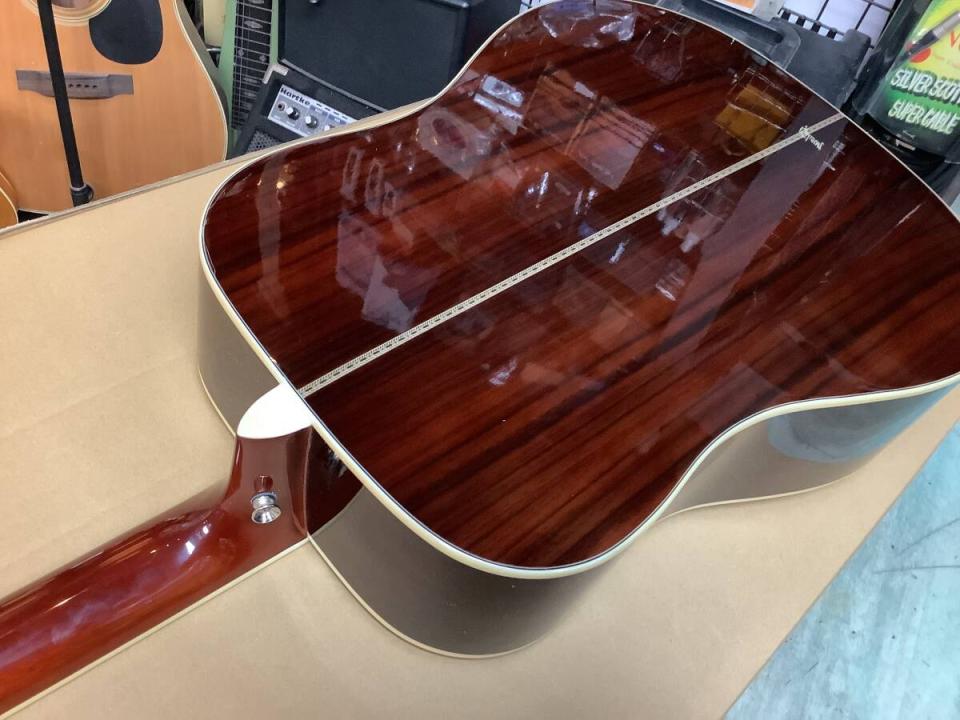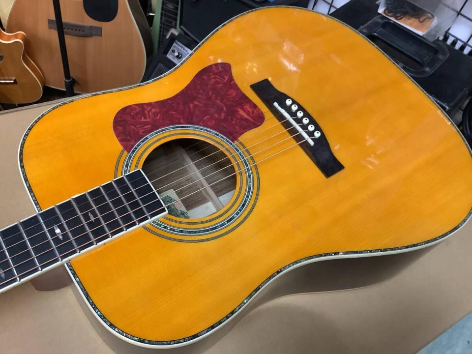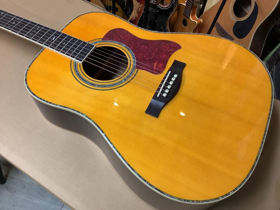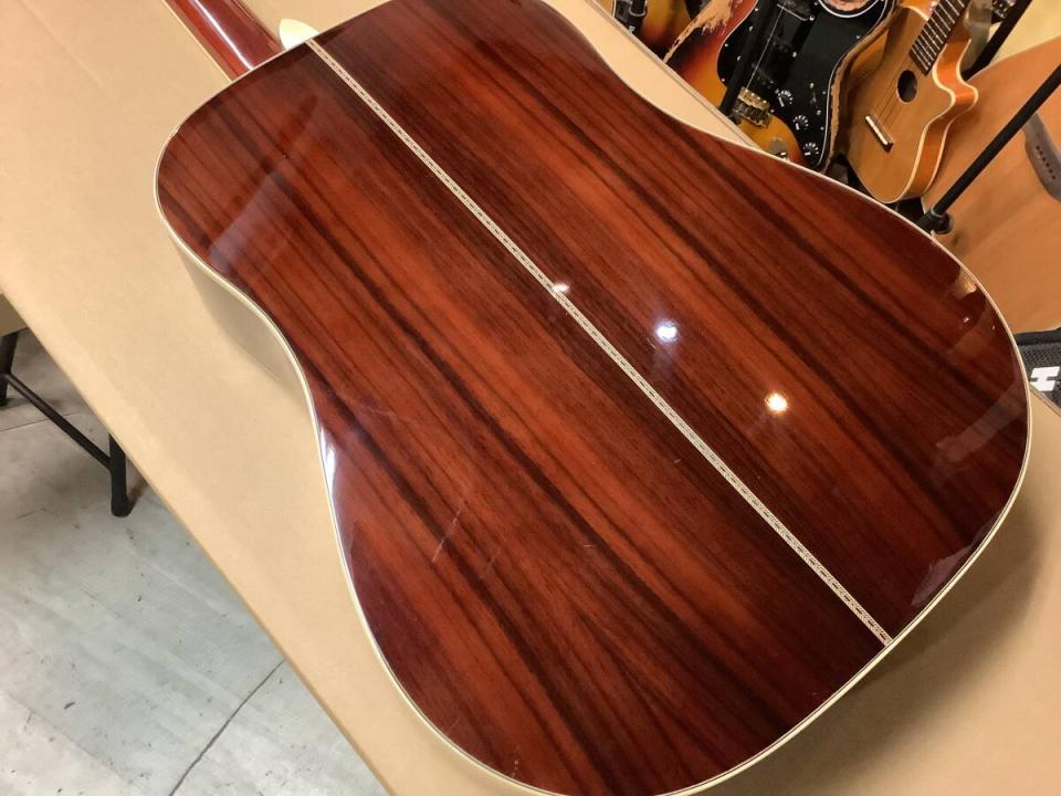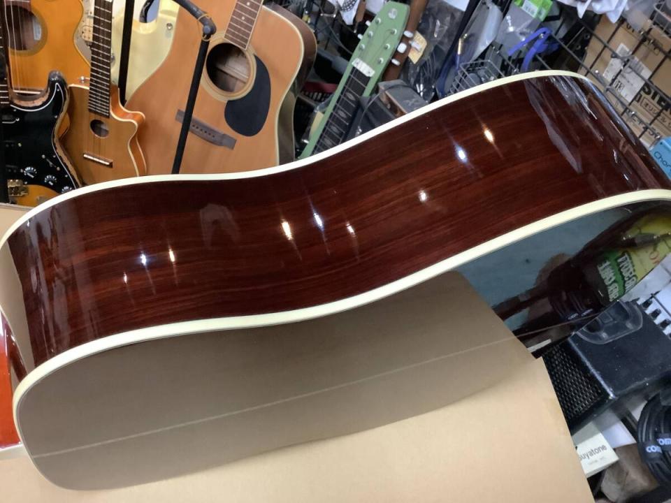 D-42タイプの貝装飾がアウトラインとロゼッタに施され、豪華な存在感とパワフルで豊かな生鳴り、そして圧倒的な音量が魅力の本体です。