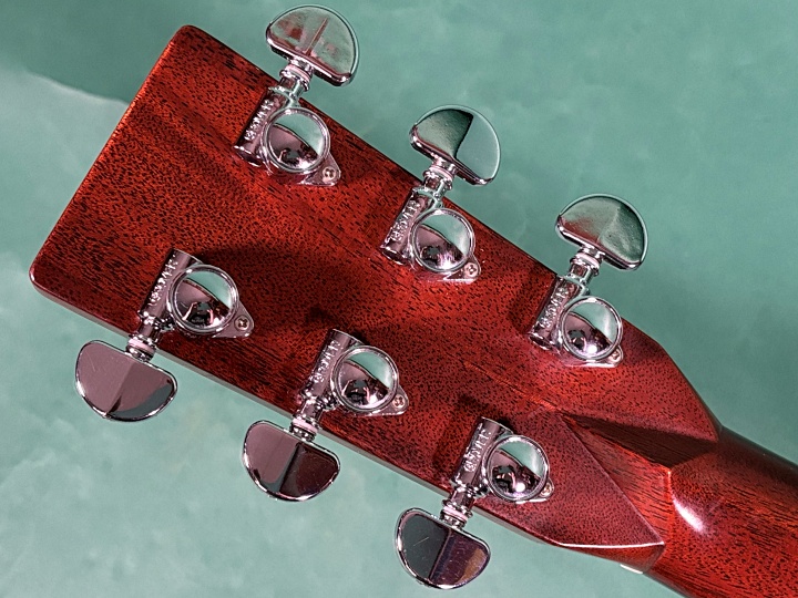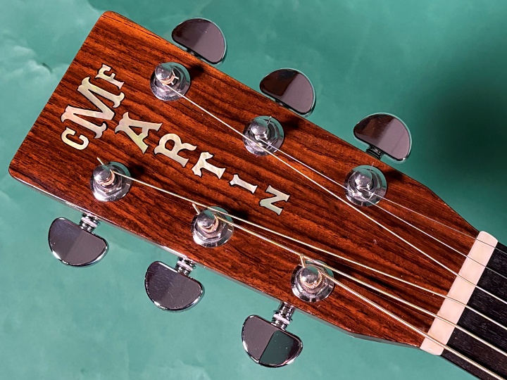 40番台以上の高級モデルに採用されるヘッドの白蝶貝【C.F. MARTIN】縦ロゴが目を惹き、しっかりとモディファイされています。その他のスペックは変更はありませんでした。